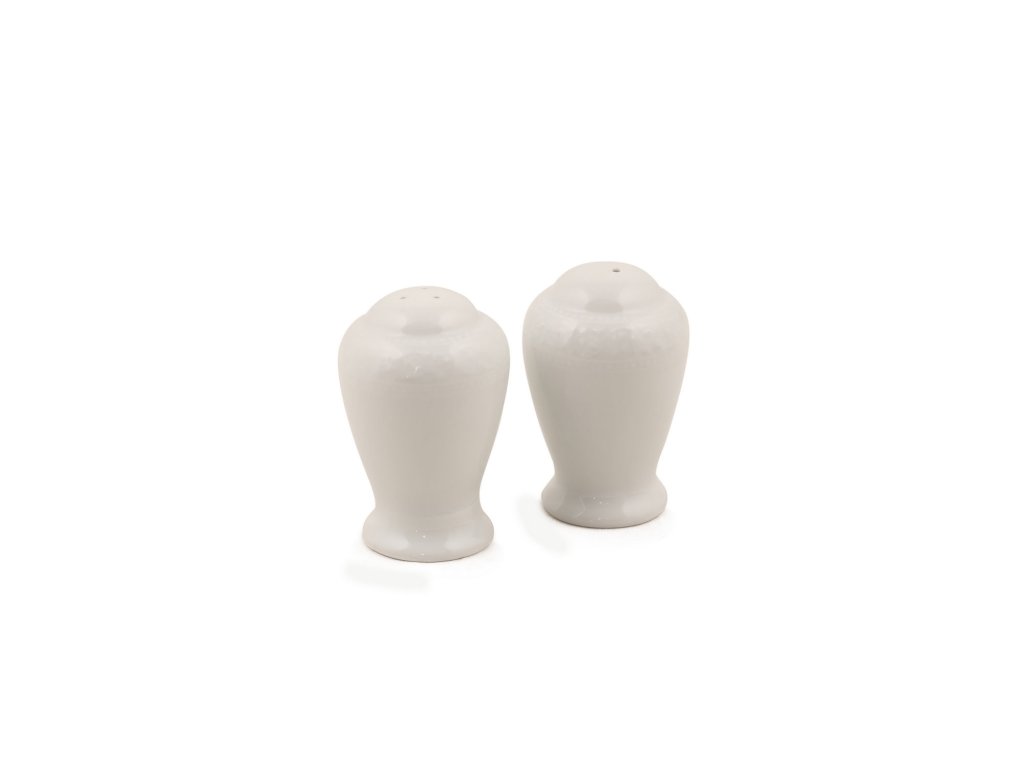 Souprava RUSTIK Vám nabízí pět druhů talířů a hluboké misky v bílé barvě s dekorativní plastickým lemem po obvodu každého kusu a sadu doplňuje slánka s pepřenkou.
