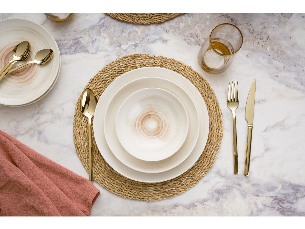 Naše jídelní souprava je vyrobena ze 100% porcelánu a vyzařuje nadčasovou krásu, která na vaše hosty zapůsobí a pozvedne váš zážitek ze stolování. Hladký a lesklý povrch každého kusu dodává nádech luxusu, takže každé jídlo bude působit jako výjimečná událost.