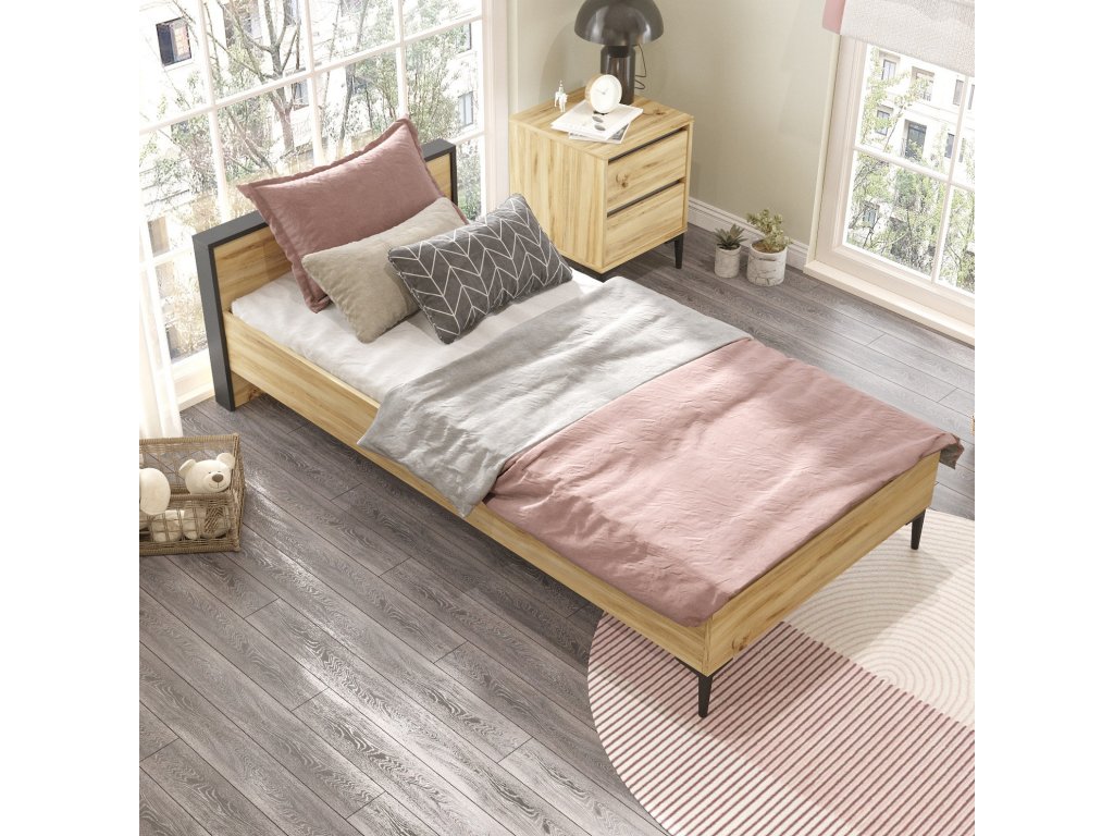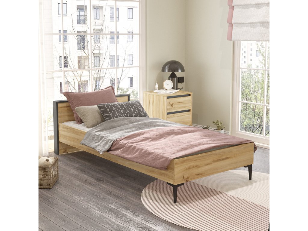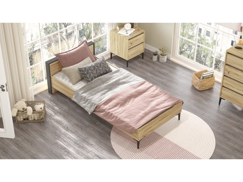 Jednolůžková postel vyrobená v dekoru dub s antracitovými doplňky může být vhodným základem pro Váš pokoj.