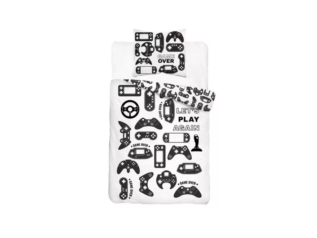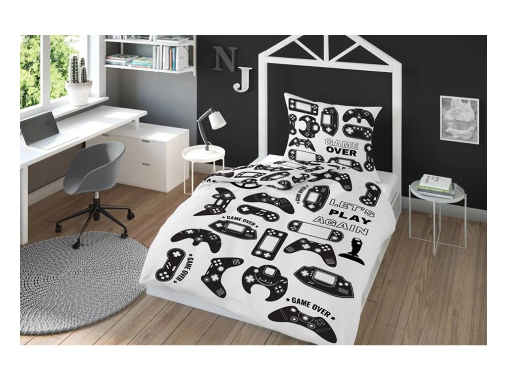 Moderní ložní povlečení v černo-bílé barvě s motivem herní konzole. Zaručeně potěší každého herního milovníka. Povlečení má oboustranné provedení. Produkt je vyroben z příjemného materiálu - bavlna. Velikost produktu 140 x 200 cm. Sada obsahuje jeden polštář a přikrývku.