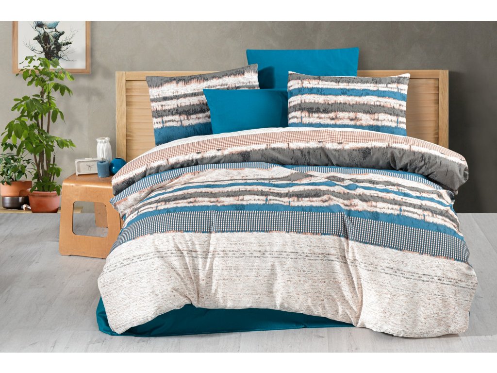 Povlečení na dvoulůžko STELLA tyrkysové, bílé, šedé