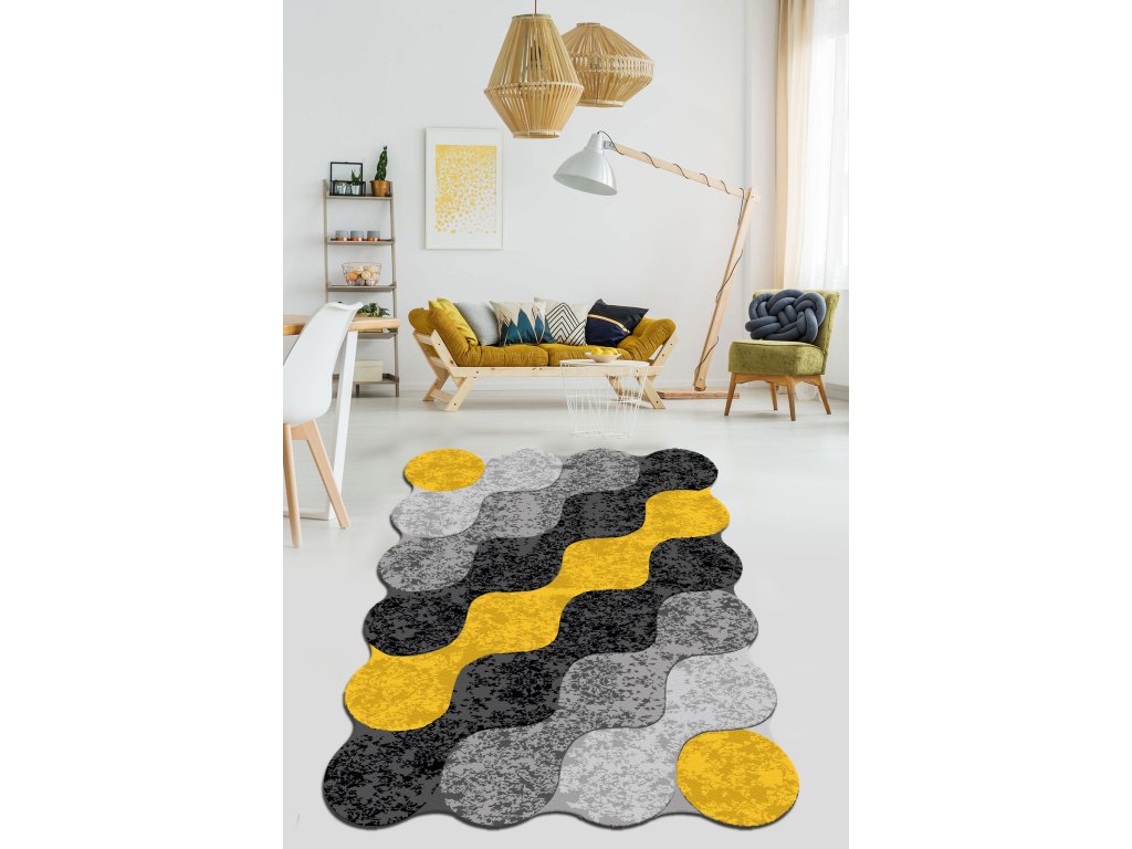Předsíňový koberec (100 x 150 cm) SPOJENÉ KRUHY černá, žlutá