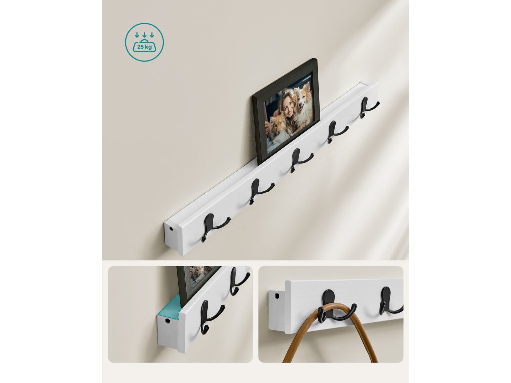 Sada kombinuje malou poličku na dekorace, 5 dvojitých háčků na tašky, oblečení a deštníky, lavičku na přezouvání a 2 police botníku. Nyní můžete mít vše, co potřebujete na cestu ven, na jednom místě!