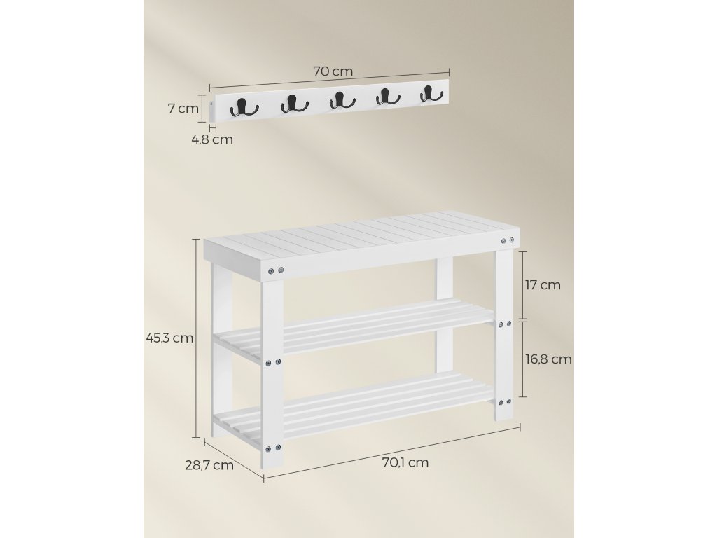 Rozměry lavice na boty: 28,7 x 70,1 x 45,3 cm