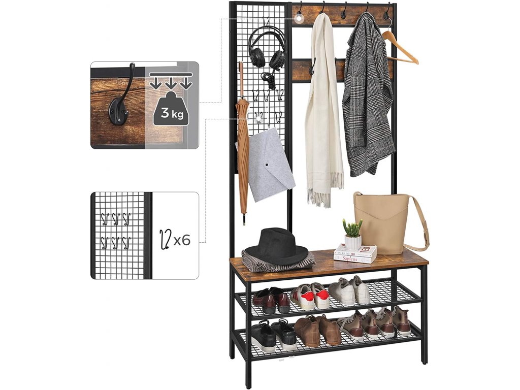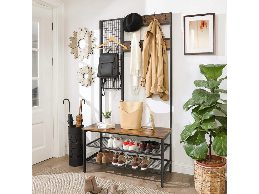 Tento věšák na oblečení s botníkem má také lavici, která unese až 100 kg. Uspořádejte, pověste, obujte.