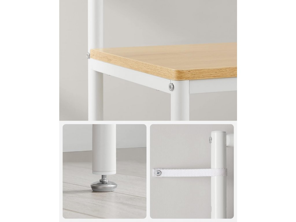 Díky ocelovému rámu a dřevotřískovým deskám je tento kus nábytku do předsíně robustní a na lavici unese až 100 kg. 4 nastavitelné nožky udržují rovnováhu. Můžete se posadit, odpočívat a bez obav se přezouvat!
