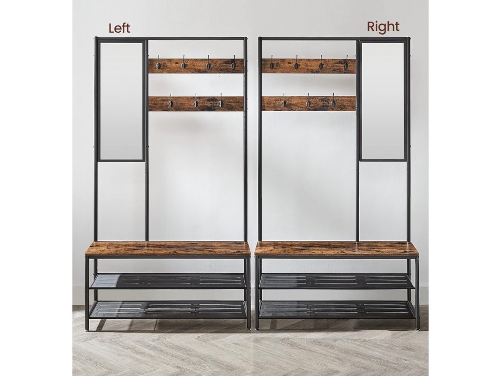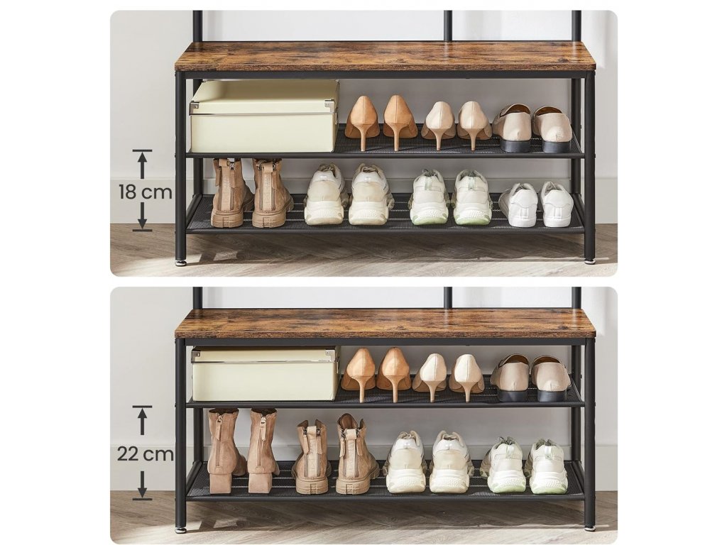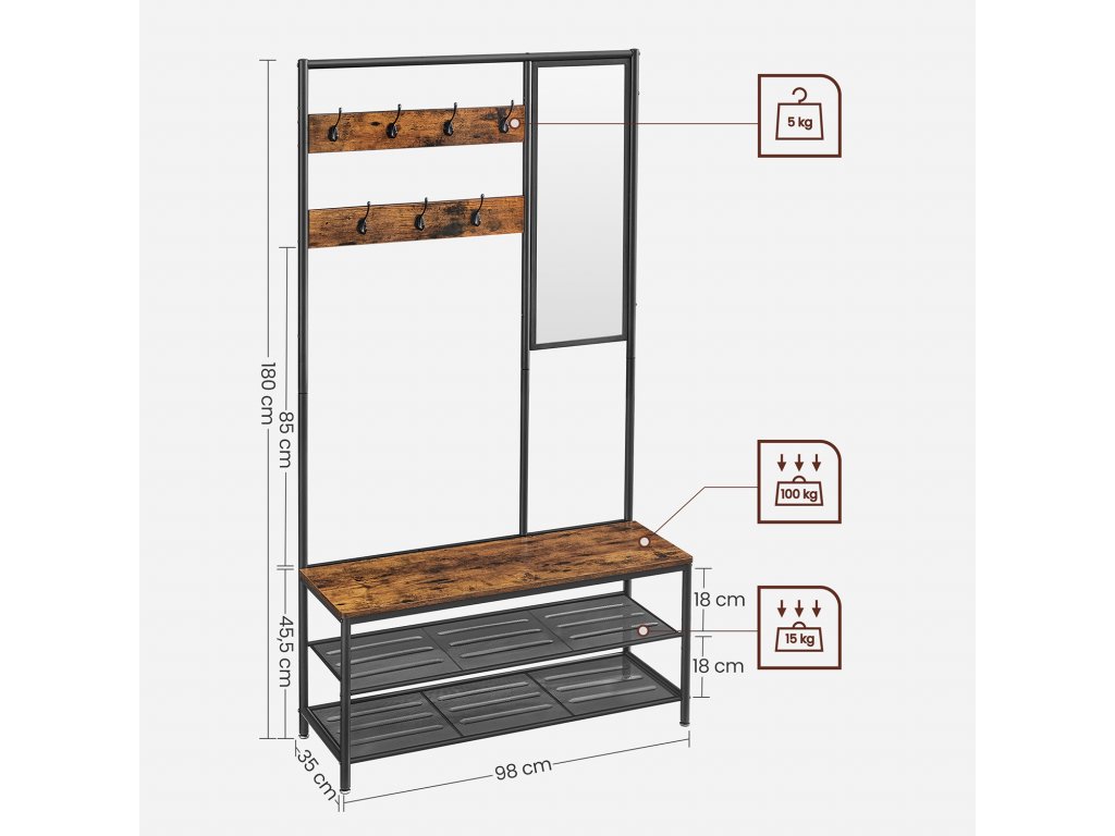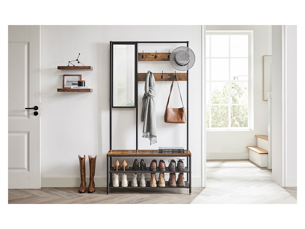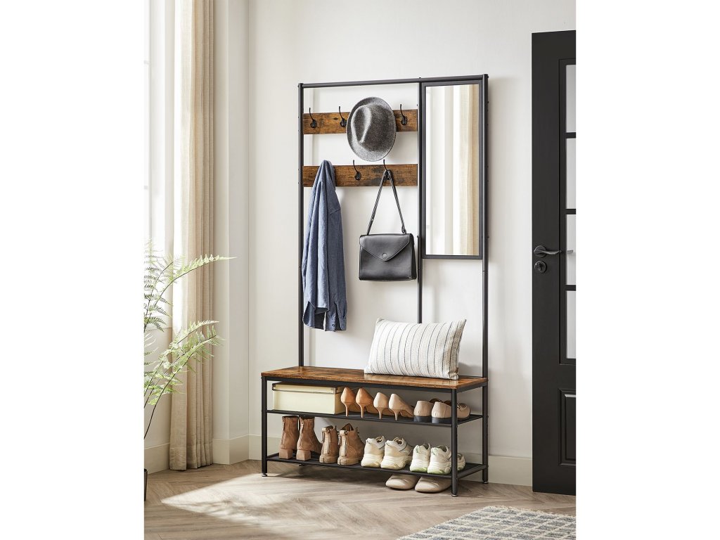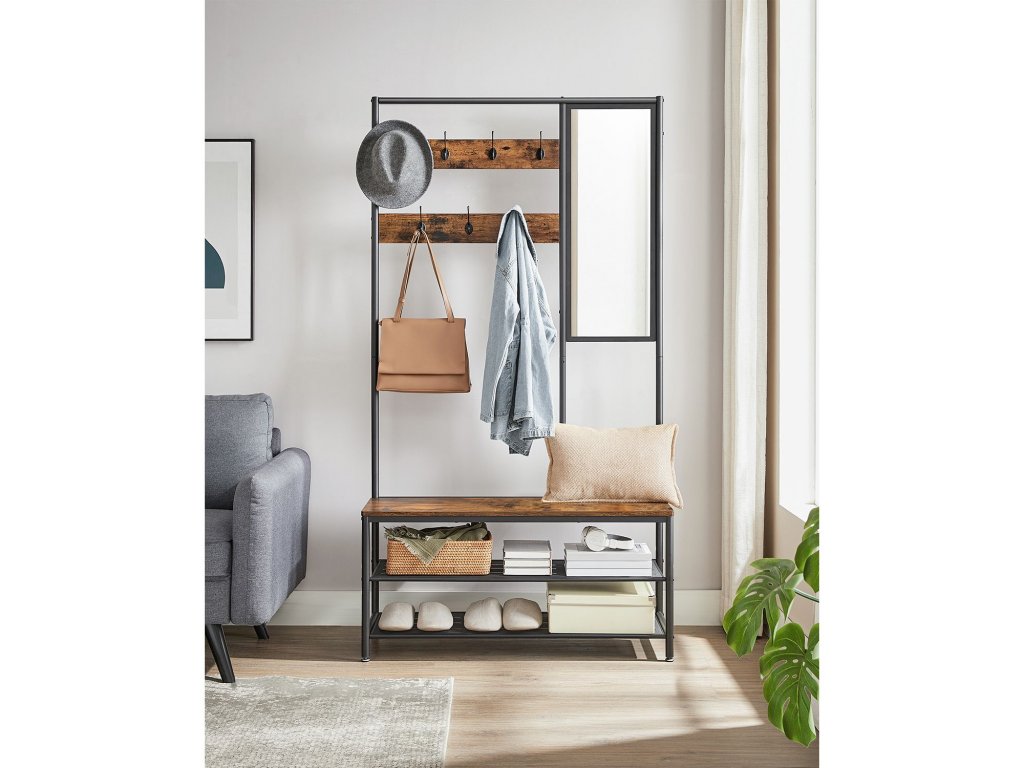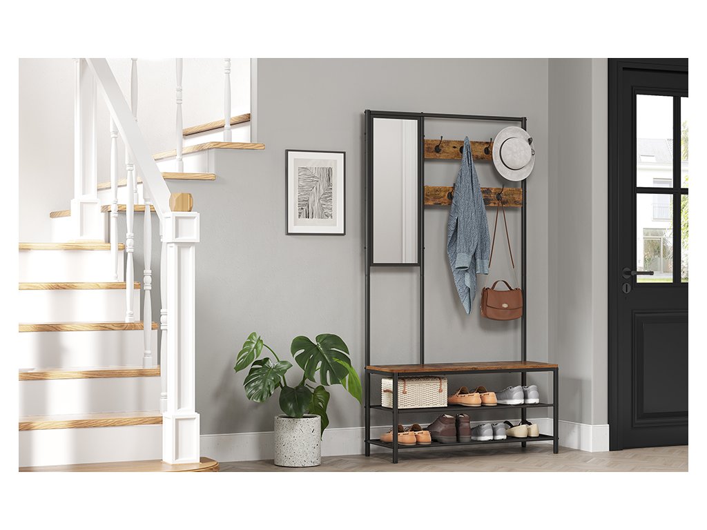 Víceúčelový věšák do předsíně má 7 háčků, 98 cm širokou lavici, 2 police a 1 zrcadlo. Na tento věšák 4 v 1 můžete umístit vše, co potřebujete, než vyrazíte ze dveří - oblečení, tašky, klobouky a boty.