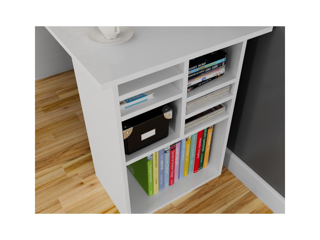 Velká pracovní deska a boční police na drobnosti a knihy.
