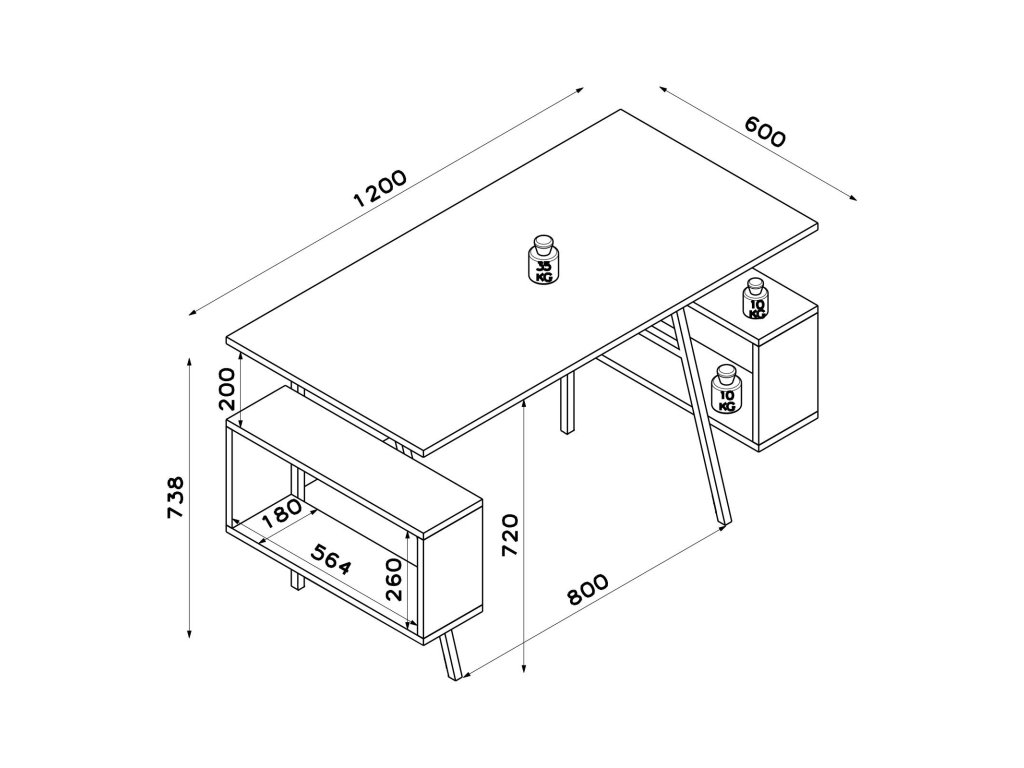 Celkové rozměry stolu: Šířka: 120 cm Hloubka: 60 cm Výška: 73,8 cm