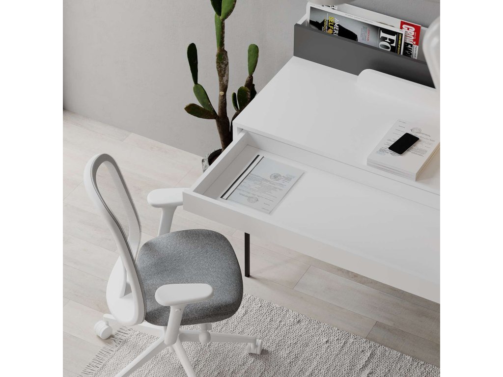 Psací stůl LEILA s kovovými nožkami najde své místo v domácí kanceláři nebo studentském pokoji.