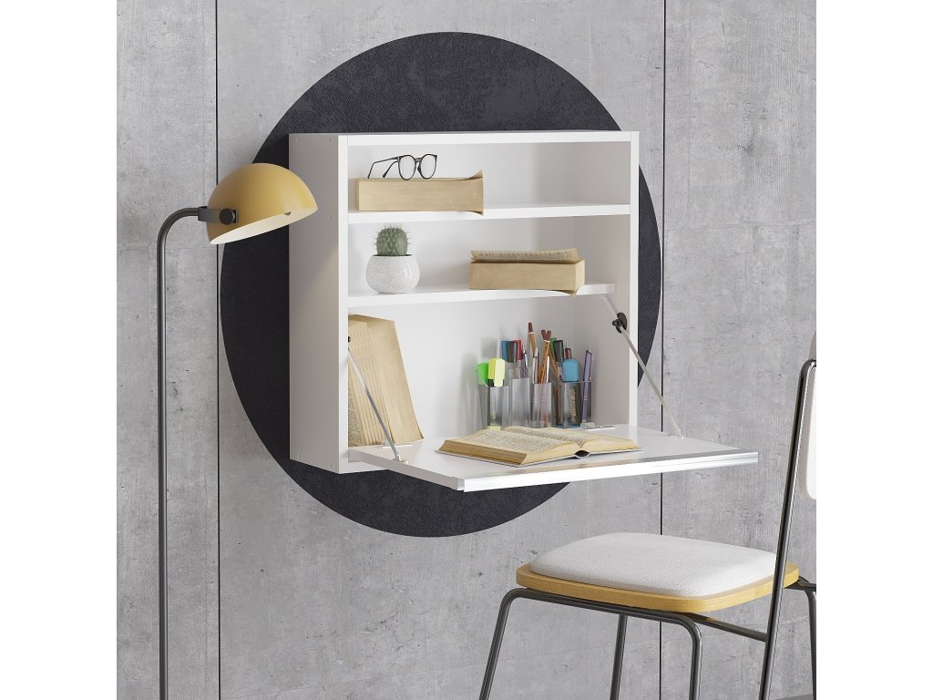 Psací stůl OPTIMUM je velice úsporný psací stolek v bílém provedení.