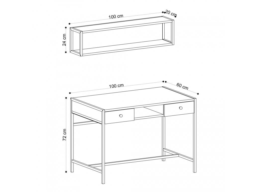 Rozměry police: 100 x 24 x 20 cm