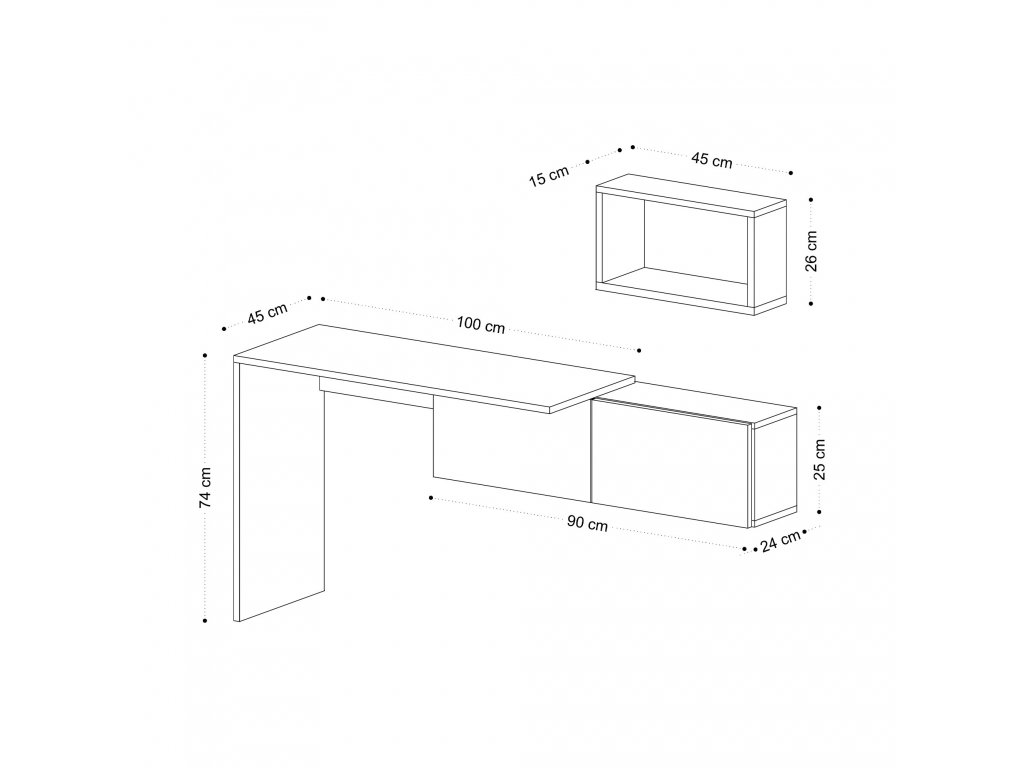 Rozměry nástěnné skříňky: Šířka: 90 cm Hloubka: 24 cm Výška: 25 cm