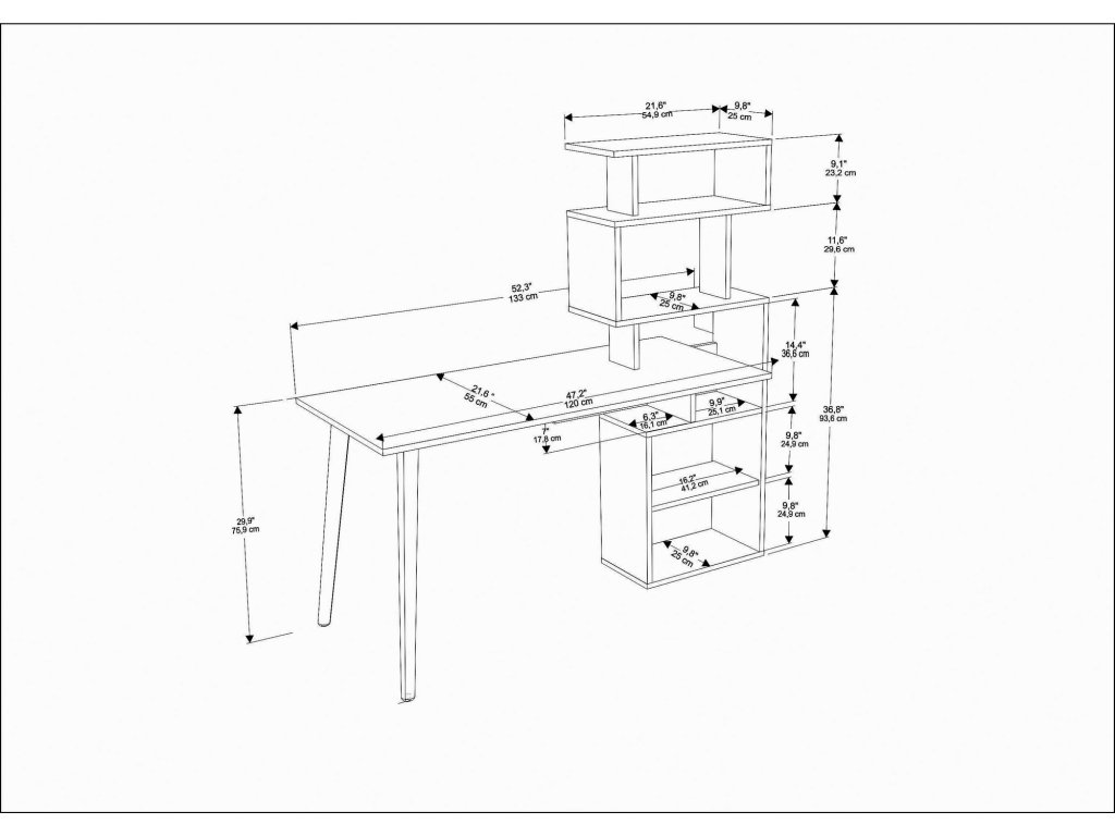 Psací stůl VINA je vyrobený v kombinaci klasického stolu a prostorné knihovny hodící se do pracovny i studentského pokoje.