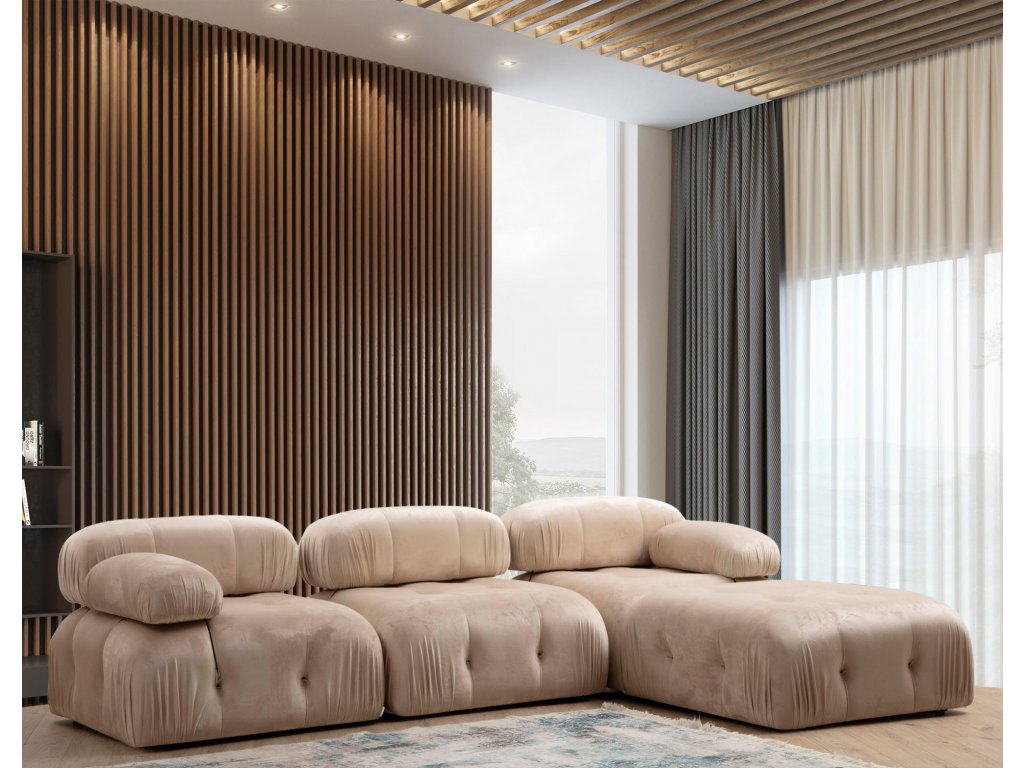 Představujeme krémovou rohovou sedací soupravu BUBBLE jakožto úžasný doplněk vašeho obývacího pokoje, který v sobě spojuje styl, pohodlí a odolnost. Tato sedací souprava je vyrobena s robustním rámem z vysoce kvalitního bukového dřeva a z MDF desek, takže slibuje dlouhou životnost. Použitá látka je ze 100% polyesteru krémové barvy, nabízí měkký a luxusní pocit.