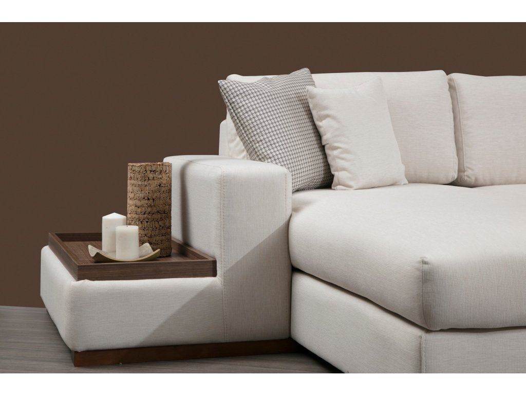 Rohová sedací souprava LOOP s praktickým odkládacím stolkem.