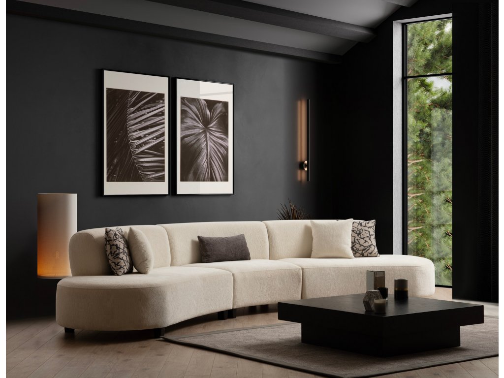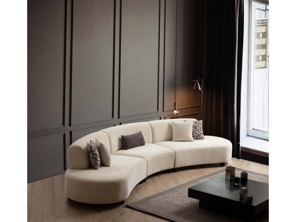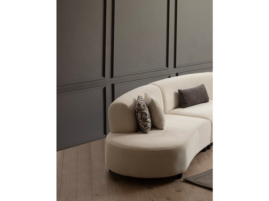 Naše rohová sedací souprava ve tvaru U, vyrobená z robustního rámu z kvalitního bukového dřeva a dřevotřísky, je odolná. Elegantní krémová barva dodá každé místnosti nádech sofistikovanosti, zatímco obdélníkové nohy z masivního dřeva s matným lakovaným lakem zajišťují stabilitu a moderní estetiku.