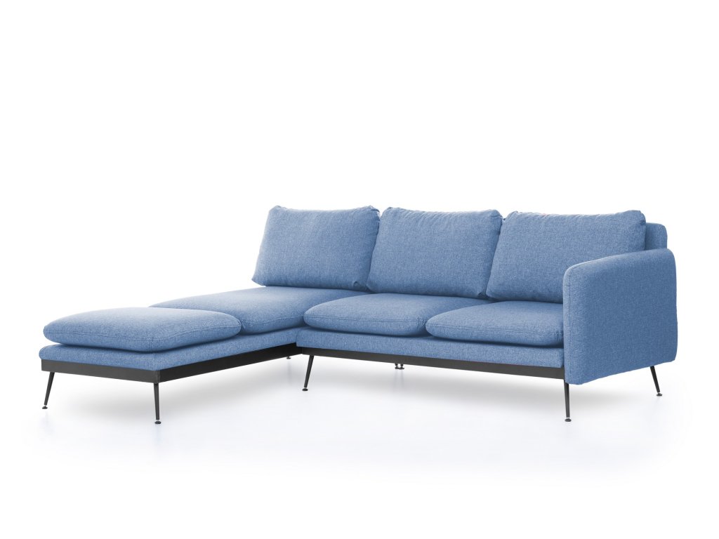 Vysoké kovové nohy dodávají sedací soupravě vzdušnost a lehkost.