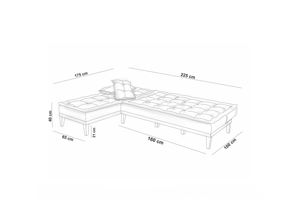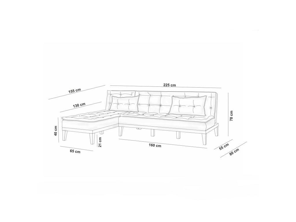 Rozměry: Šířka: 225 cm Výška: 78 cm Hloubka: 155 cm Výška sedáku: 40 cm Hloubka sedáku: 55 cm, Výška nohou: 21 cm