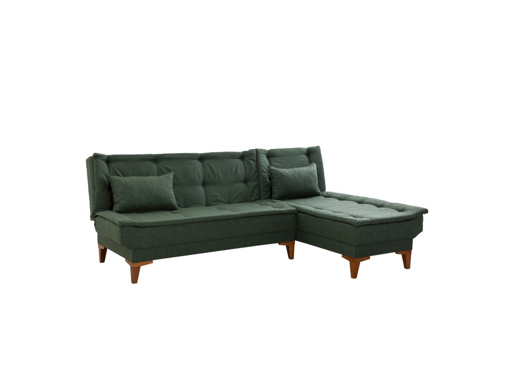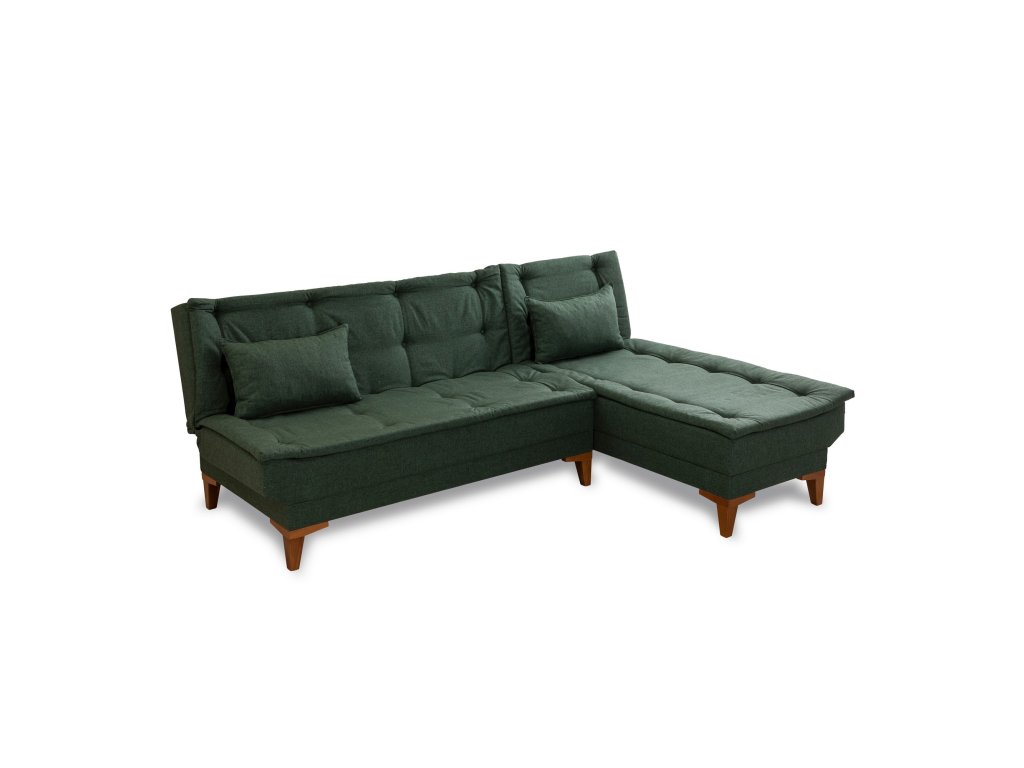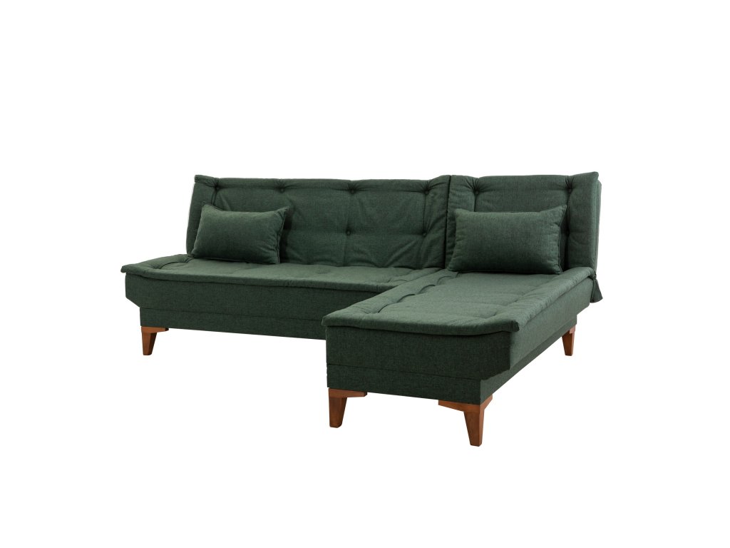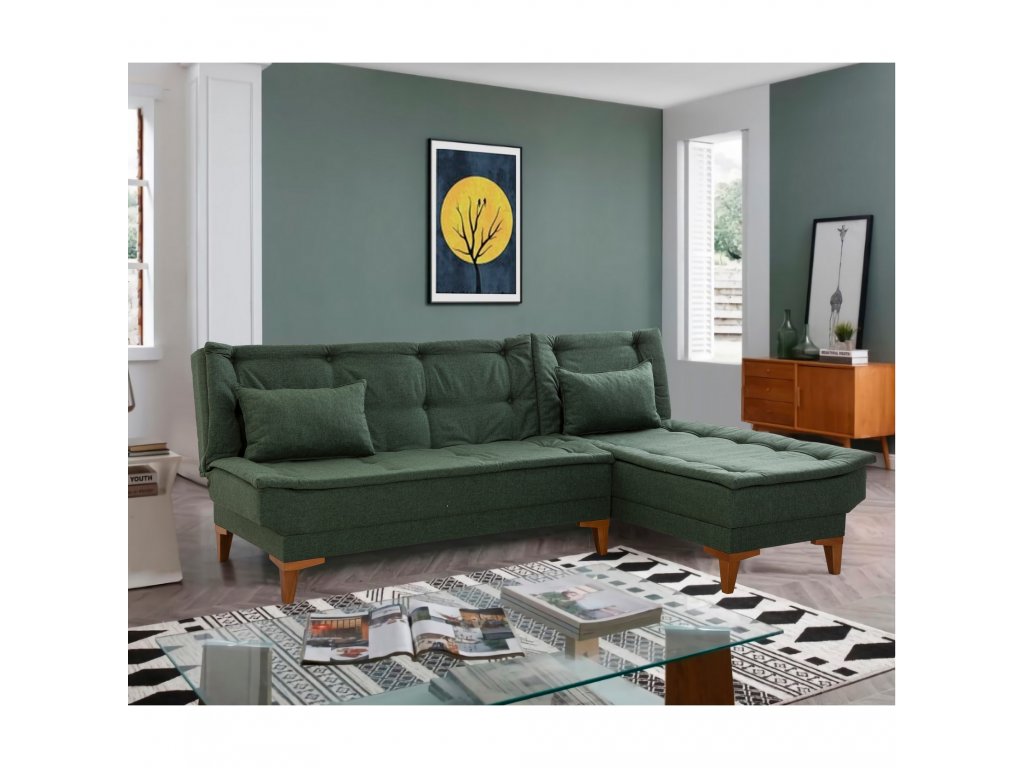 Kvalitně vyrobená nalevo situovaná zelená rohová sedací souprava SANTO je dílem, které v sobě spojuje styl, pohodlí a funkčnost. Rozkládací sedací souprava, vyrobená z rámu z bukového dřeva a čalouněná 100% polyuretan /akrylovou látkou zelené barvy je navržena tak, aby odolala i zkoušce času. Sedací souprava vyhovuje i nárokům na čistotu, neboť látka, která byla zvolená na čalounění, je snadno chemicky čistitelná.