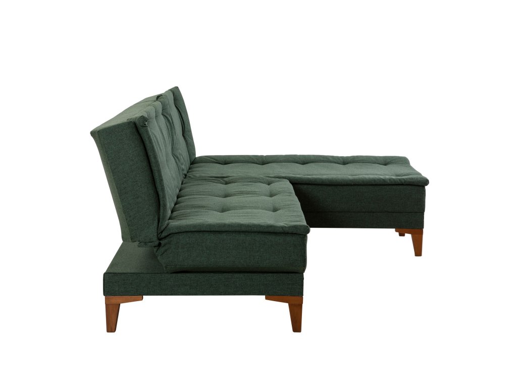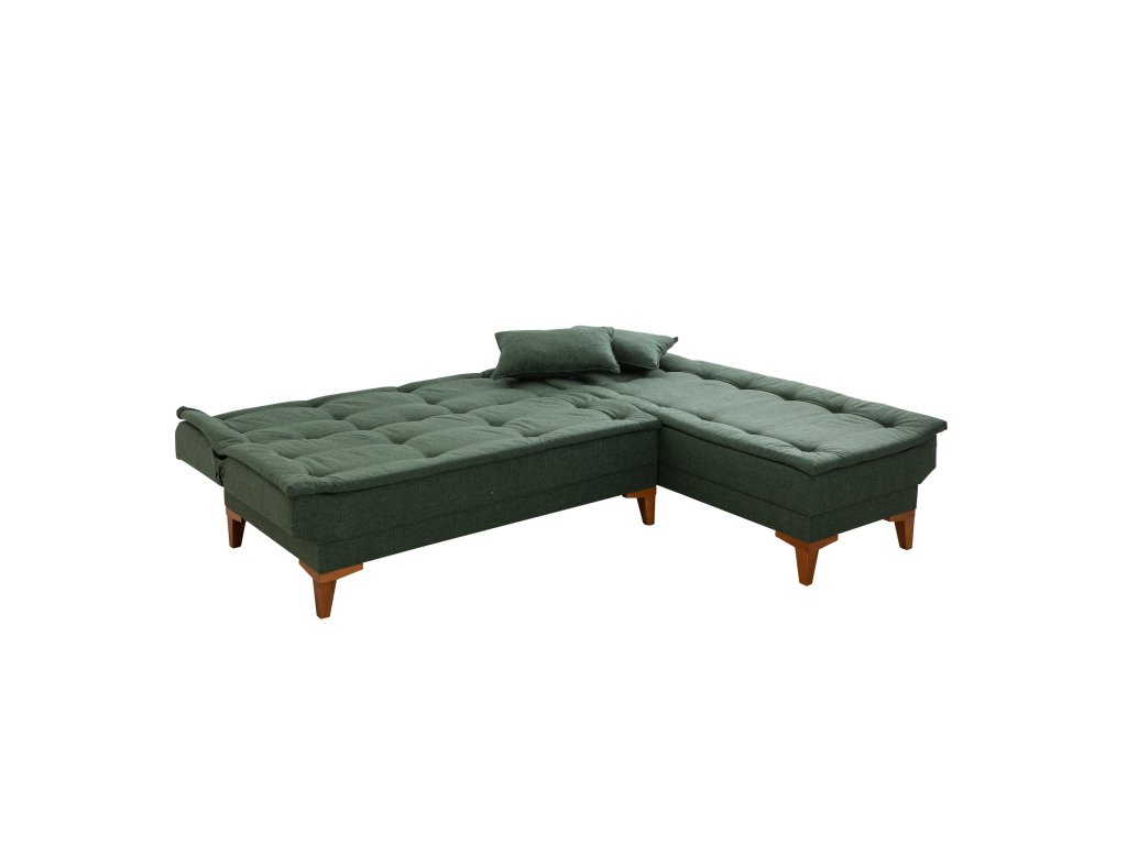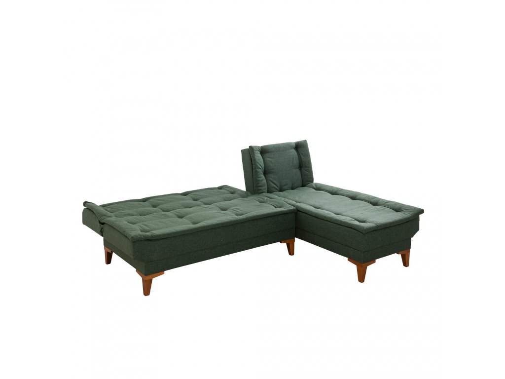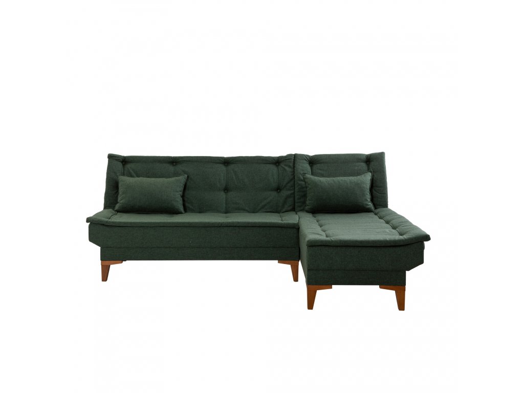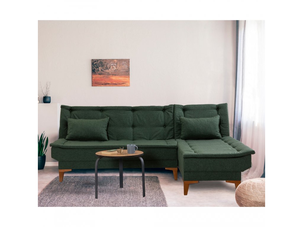 Kvalitně vyrobená nalevo situovaná zelená rohová sedací souprava SANTO je dílem, které v sobě spojuje styl, pohodlí a funkčnost. Rozkládací sedací souprava, vyrobená z rámu z bukového dřeva a čalouněná 100% polyuretan /akrylovou látkou zelené barvy je navržena tak, aby odolala i zkoušce času. Sedací souprava vyhovuje i nárokům na čistotu, neboť látka, která byla zvolená na čalounění, je snadno chemicky čistitelná.