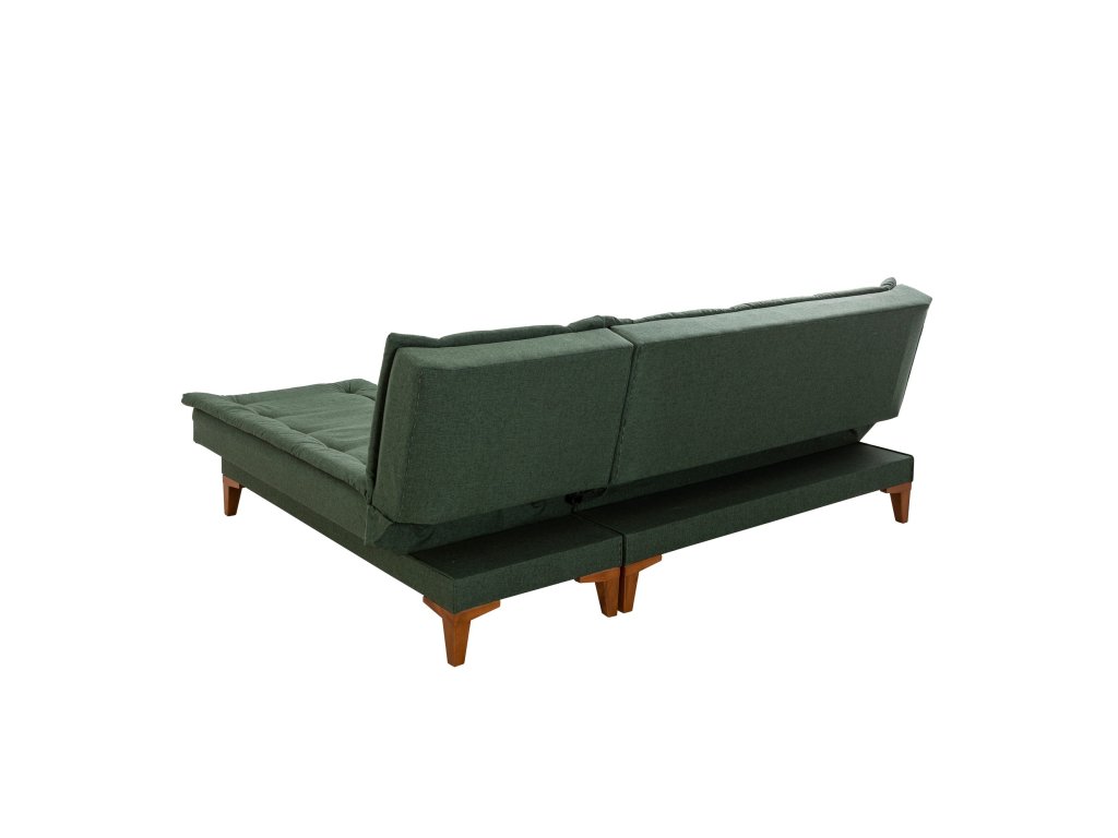 Plastové15 cm vysoké nohy dodávají celé pohovce stabilitu a podporují i moderní design. Rohová rozkládací sedací souprava SANTO se zeleným čalouněním poskytuje nejen maximální pohodlí, ale také všestranný prostor pro relax a odpočinek. Elegantní zelená sedací souprava SANTO je navržena tak, aby bylo možné z rohové sedací soupravy vykouzlit i prostor pro spánek. Snadnou manipulací získáte pohodlné dvojlůžko s rozměry 225 x 107 cm pro příležitostné přespání návštěv.