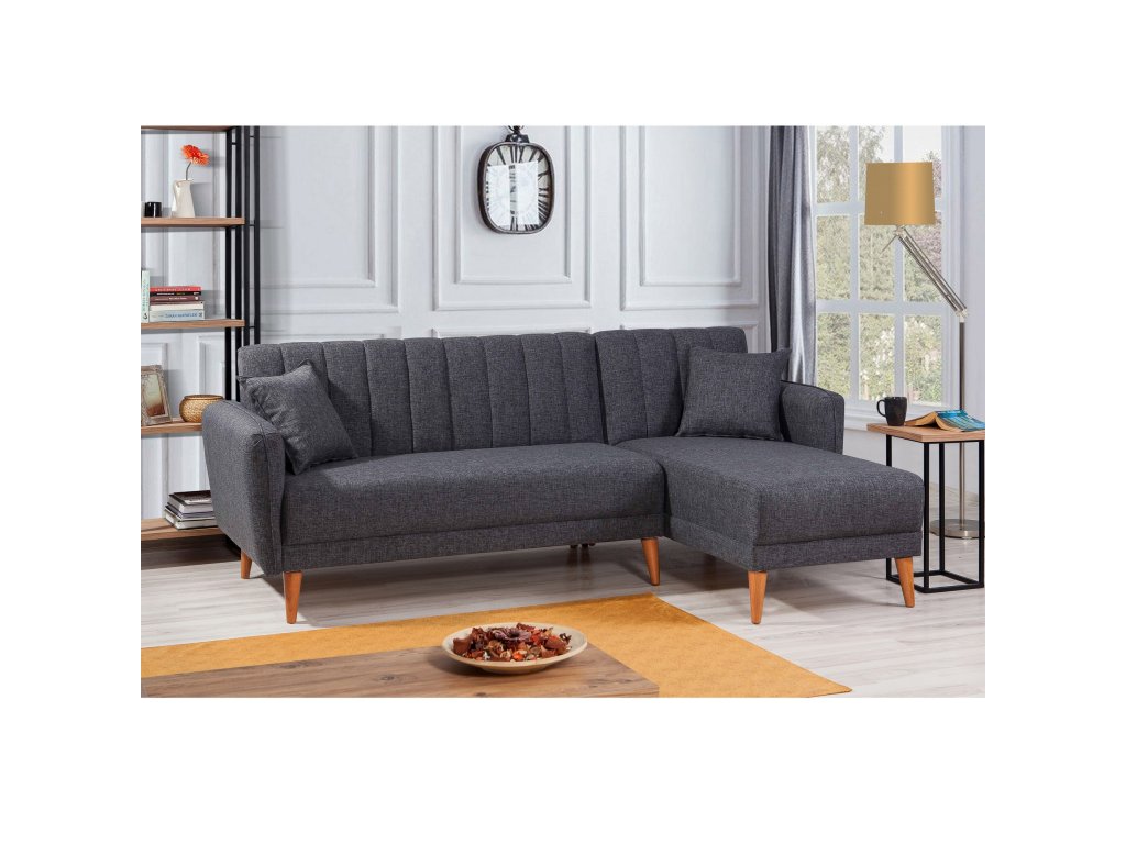 Rohová sedací souprava s rozkladem na lůžko AQUA pravá tmavě šedá