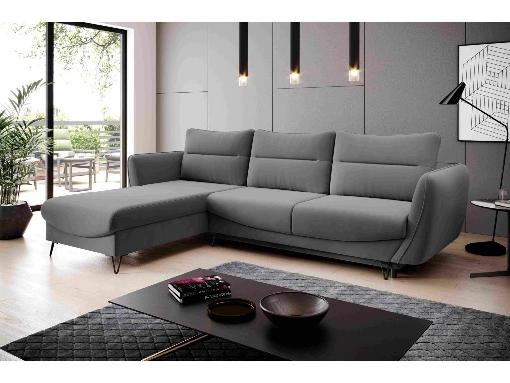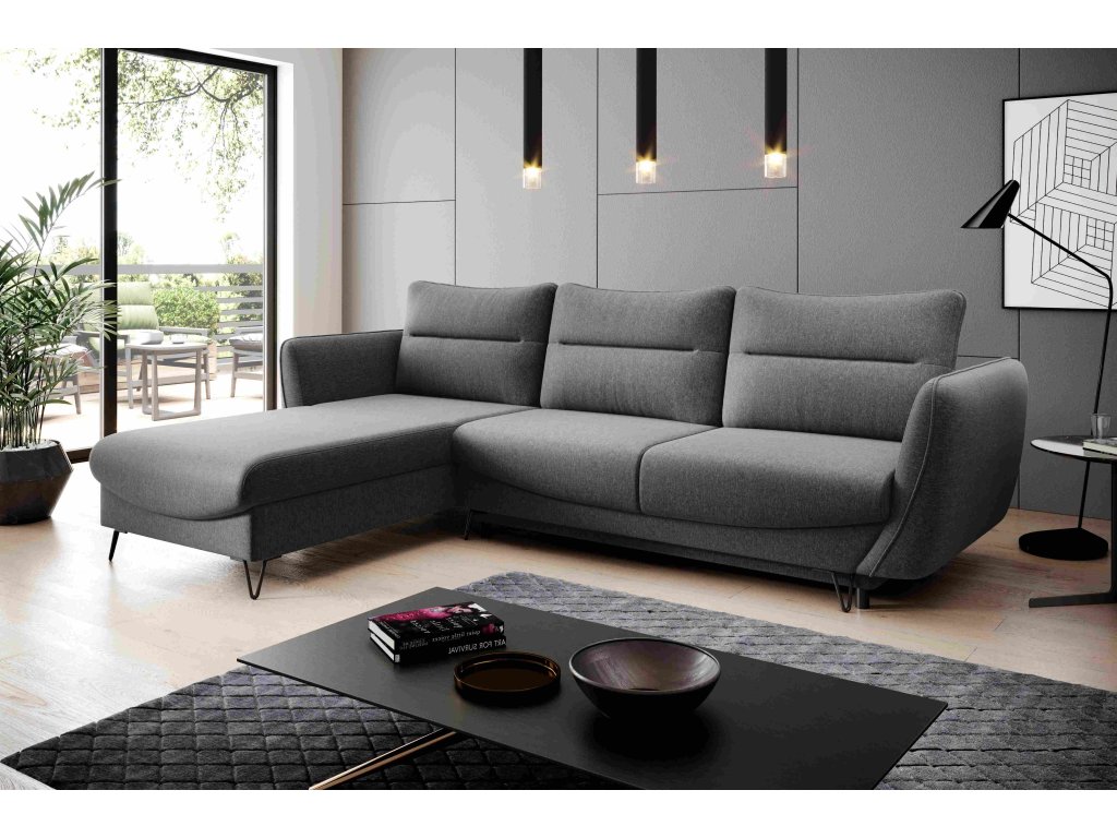 Kromě toho je výhodou nábytku také prostorná přihrádka na lůžkoviny ukrytá v rohovém otomanu. Rozkládání je také velmi snadné, protože automatický mechanismus DL je v tomto případě velmi jednoduchý a intuitivní. Stačí vysunout část nábytku, která slouží jako sedadlo, a poté do nově vzniklého volného prostoru spustit opěradlo.