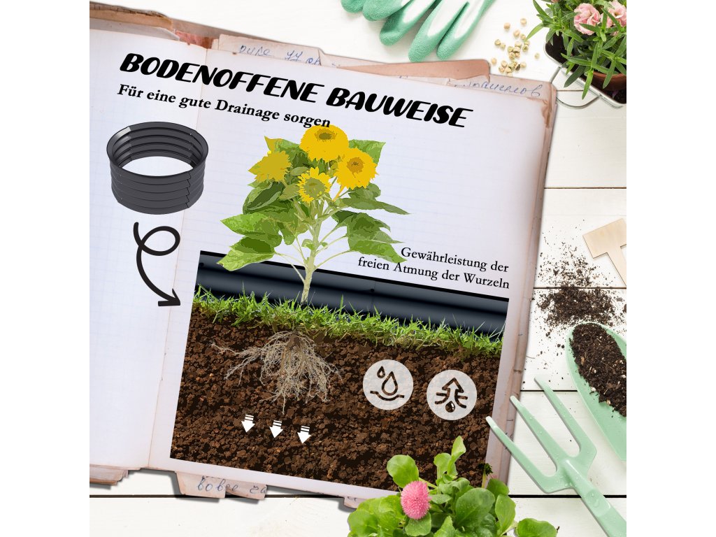 ✔ Otevřená základna truhlíku pro přímý kontakt s půdou