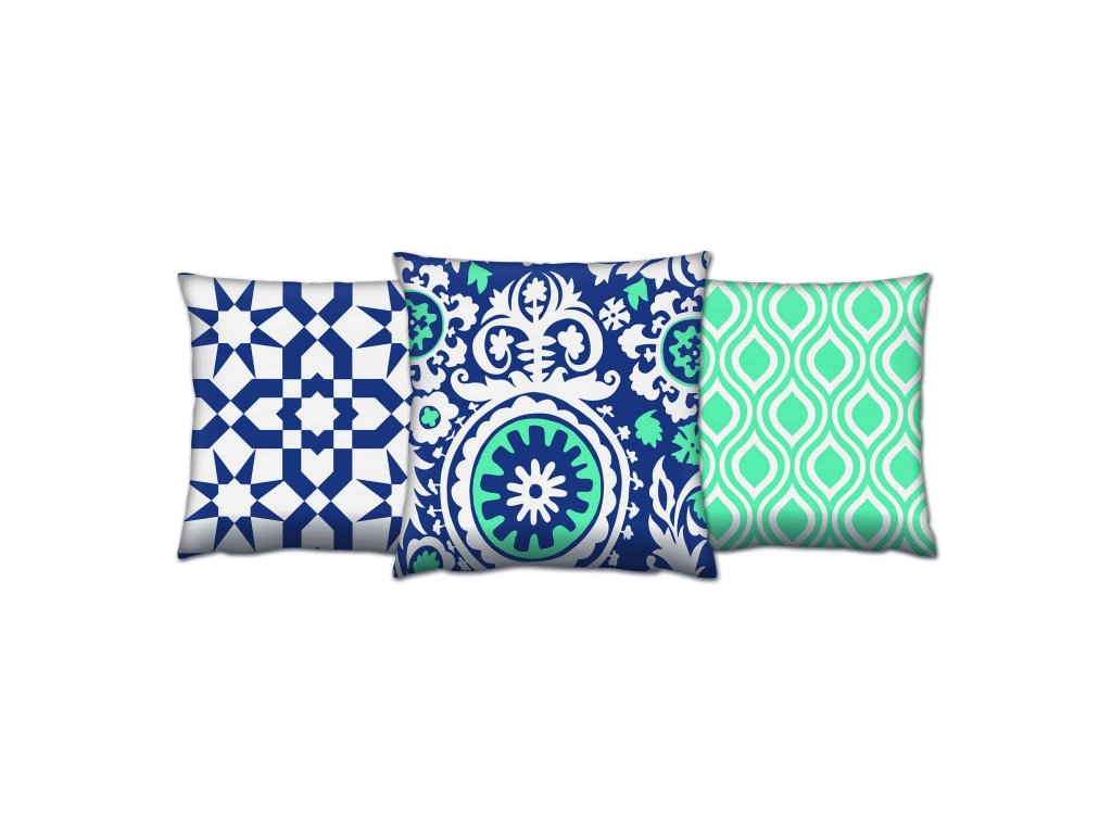 Sada dekorativních polštářků MODRÁ A MINT 43 cm polyester-bavlna