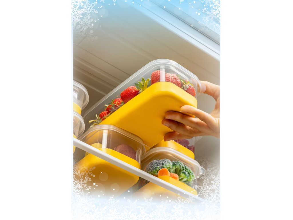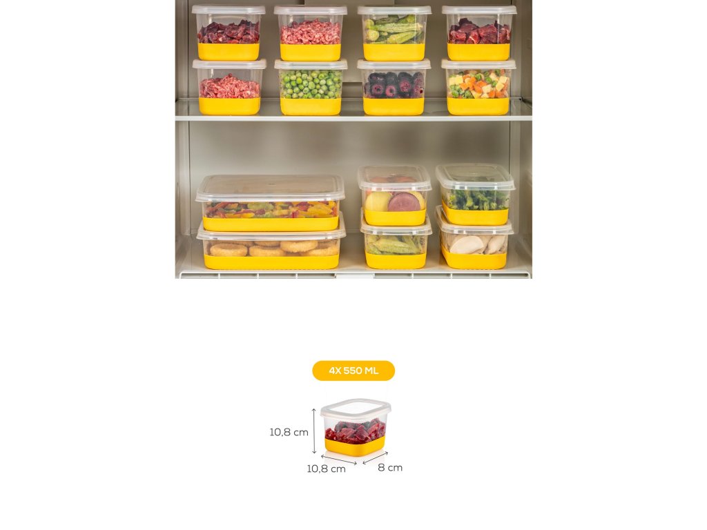 Zářivě žlutá barva těchto nádob dodá vaší chladničce veselou náladu, takže ji bude radost otevírat a používat. Odolná plastová konstrukce neobsahuje BPA a lze ji mýt v myčce nádobí, takže vaše potraviny zůstanou čerstvé a nádoby čisté. Velikost 550 ml je ideální pro skladování různých položek, od ovoce a zeleniny až po zbytky jídla a svačiny.