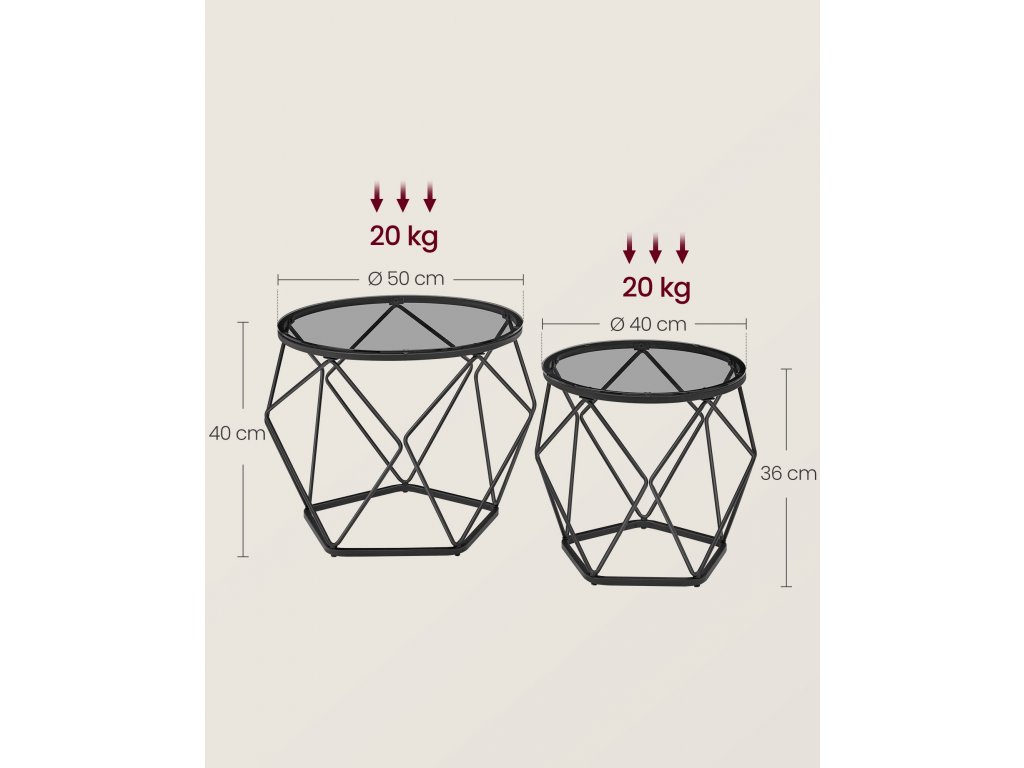 Díky kvalitnímu tvrzenému sklu a pevné ocelové konstrukci jsou tyto stolky velmi stabilní. Nebudou se kývat ani když si sundáte šálek či sklenici, a každý z nich unese až 20 kg zátěže.