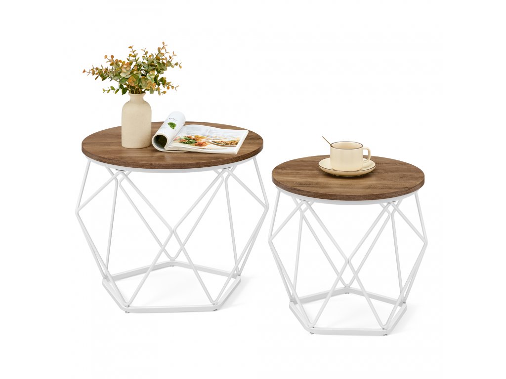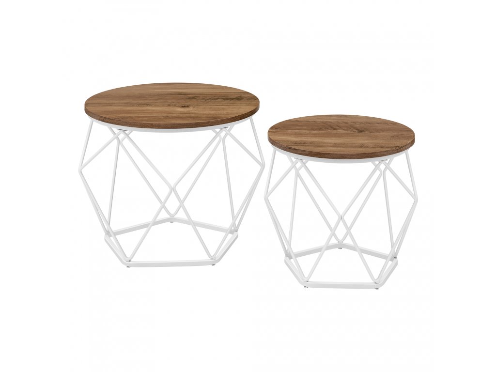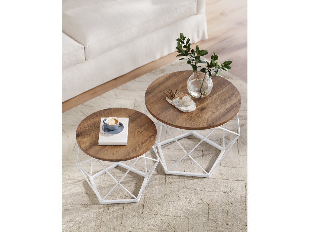 Tato sada stolků vašemu domovu vdechne moderní vzhled. Kulatými skleněnými deskami a bílými geometrickými rámy z oceli okouzlí vaše hosty a dodají vašemu prostoru eleganci a svěžest.