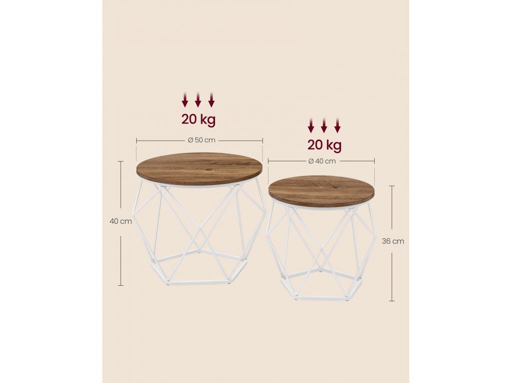 - Rozměry: Servírovací stolek 50 × 40 cm, malý stolek 40 × 36 cm (průměr x výška)
