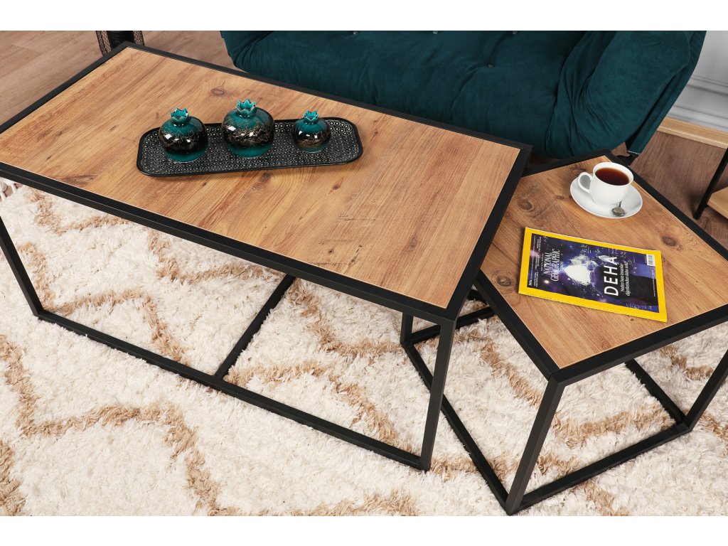 Sada konferenčních stolků ATLANTIS je vyrobena z desek v dekoru ořech a z černých kovových rámů sloužících jako nohy.