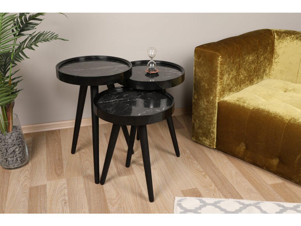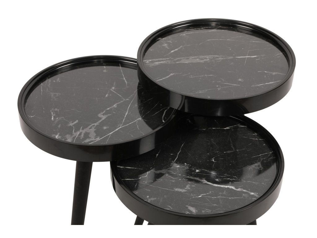 Sada konferenčních stolků CALL nabízí tři černé stolečky se stejně velkou odkládací deskou v dekoru černý mramor.