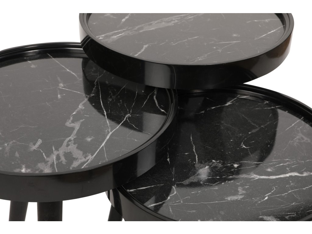 Sada konferenčních stolků CALL jsou tři černé stolečky, které mají ozdobnou kruhovou desku mramorového dekoru.