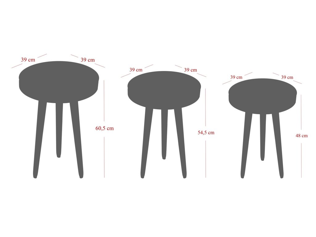 Rozměry středního stolu: Šířka: 39 cm Hloubka: 39 cm Výška: 54,5 cm (1 kus)