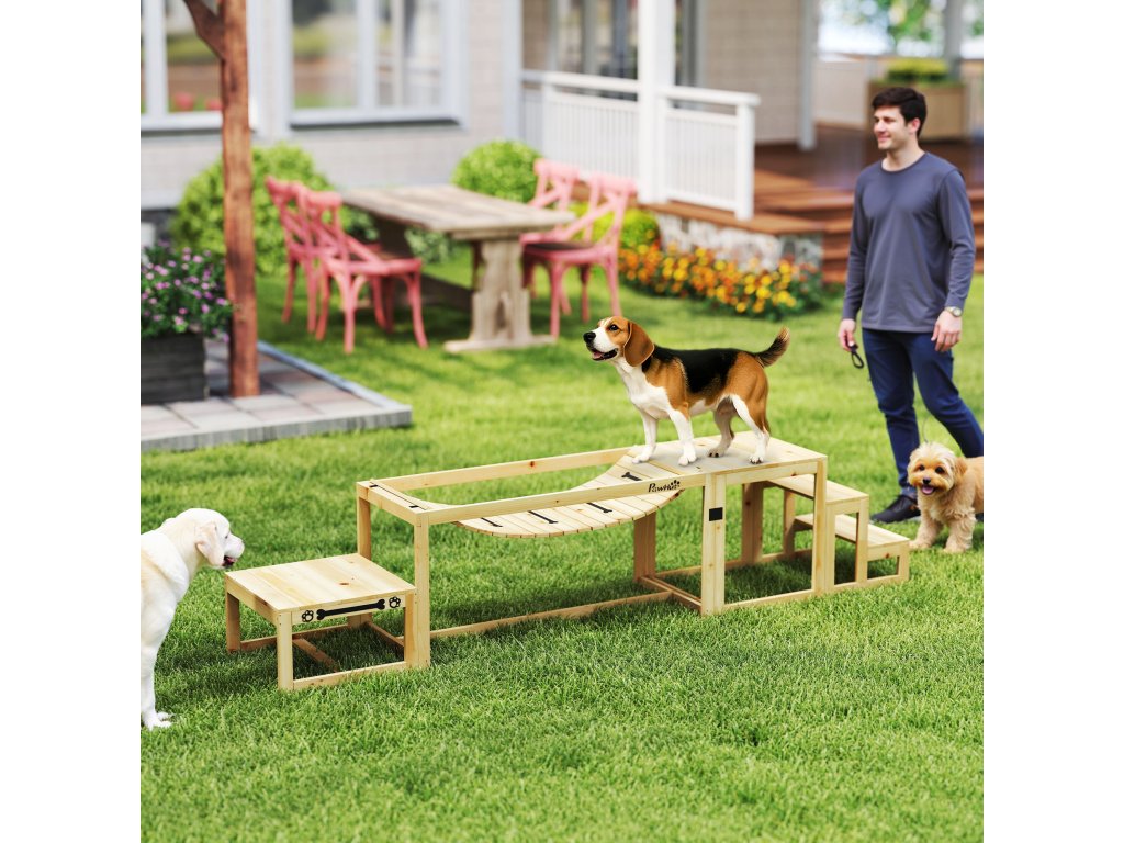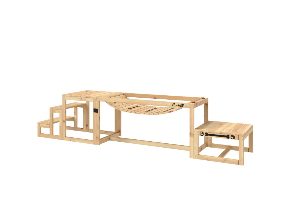 Sada pro agility s mostem, schody a plošinou do 40 kg přírodní dřevo