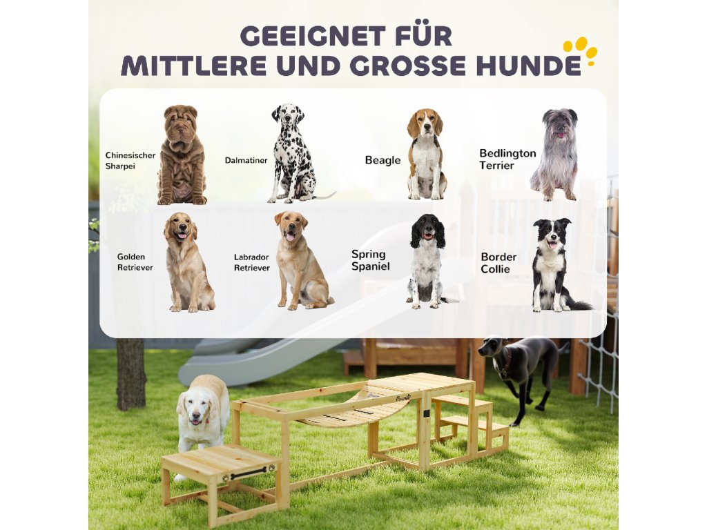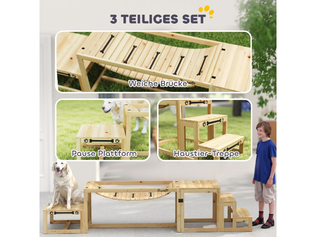 ✔ Obsahuje měkký můstek, pauzovací plošinu a schody pro mazlíčky pro agility