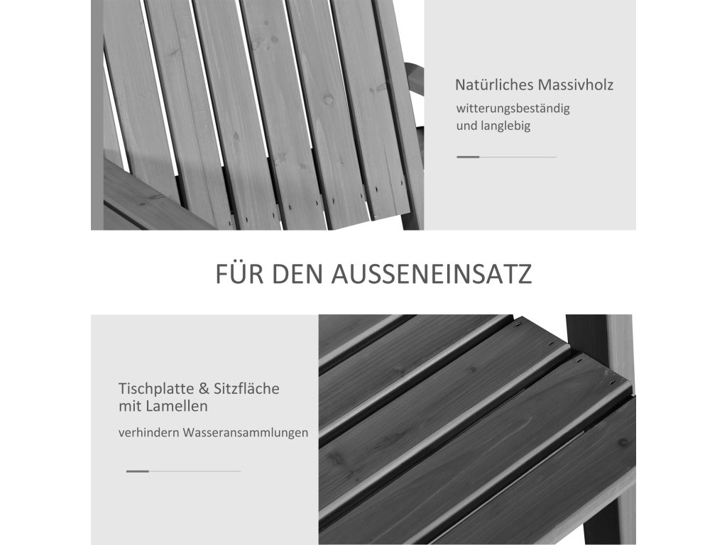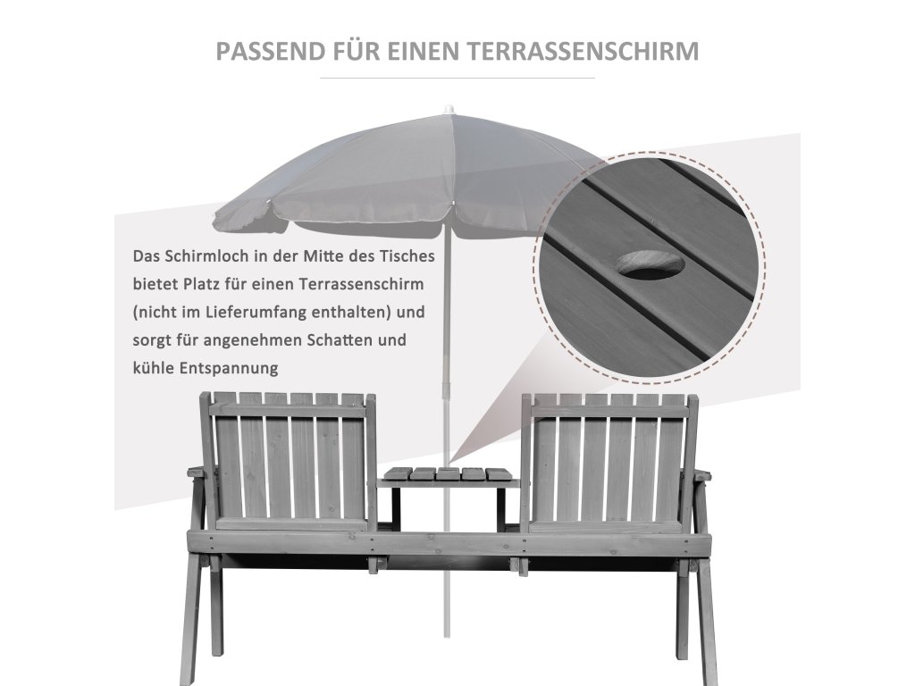 Sada zahradního nábytku s otvorem na slunečník 2 židle z masivního dřeva šedá