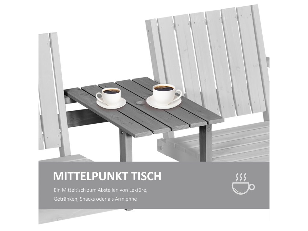 - ✔ 2místné křeslo s čajovým stolkem uprostřed pro umístění nápojů a občerstvení