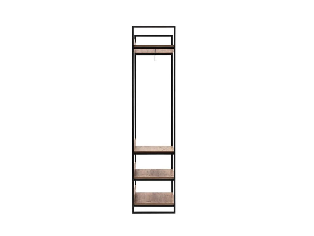 DYNAMIC je otevřená šatní skříň se stabilní kovovou konstrukcí s deskami v dekoru borovice atlantic.