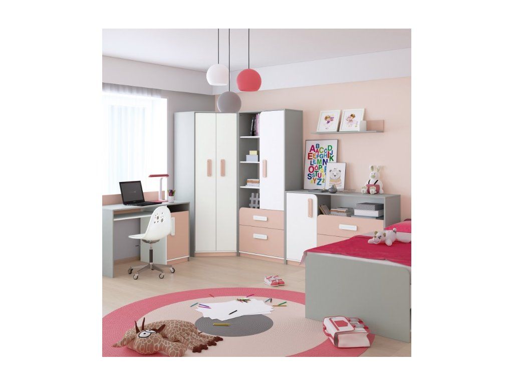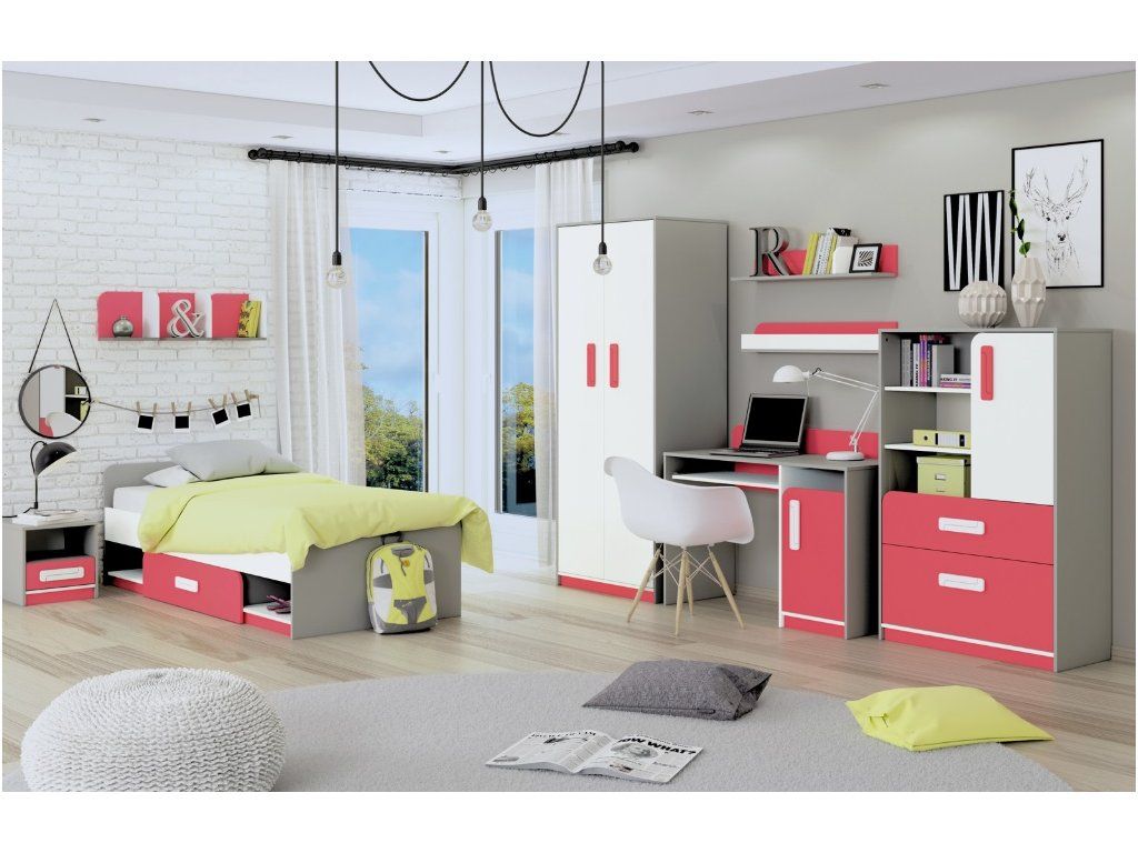 Tato kolekce je vyrobena z vysoce kvalitní lamino desky odolné proti mechanickému poškození, oděru a škrábancům, což je v případě návrhu interiéru pro děti obzvláště důležité. Možnost výběru ze čtyř barevných variant ocení hlavně děti. Malina, pudrová, modro/zelená a zelená jsou hravé přírodní barvy, které v kombinaci s bílou a šedou tvoří zajímavý a jemný design pokoje.