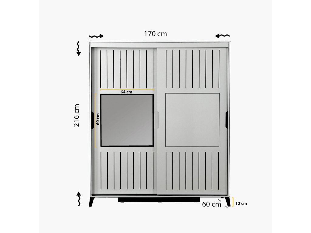 Šířka: 170 cm Výška: 216 cm Hloubka: 60 cm