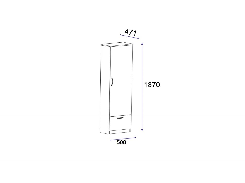 Rozměry: Šířka: 50 cm Hloubka: 47,1 cm Výška: 187 cm
