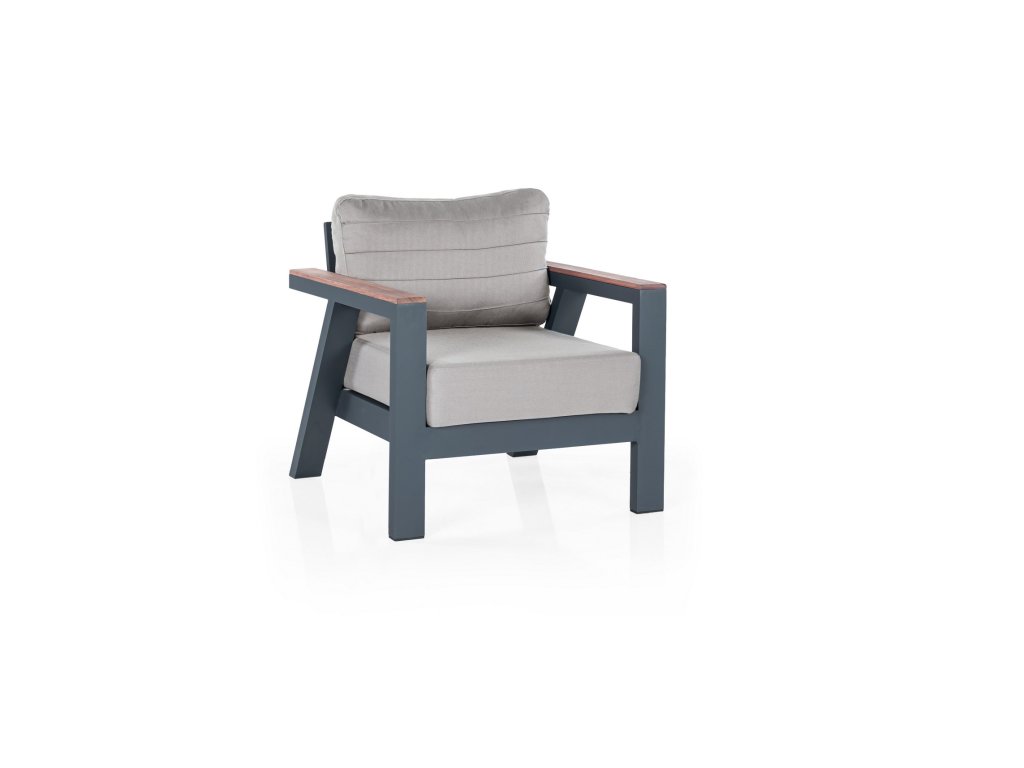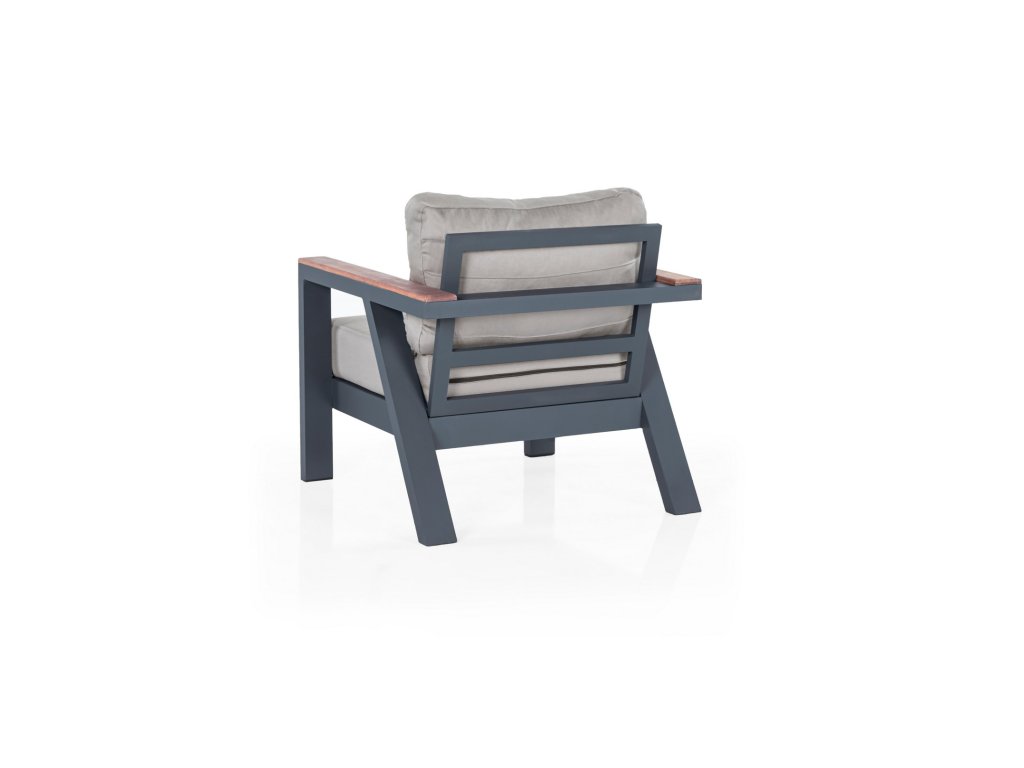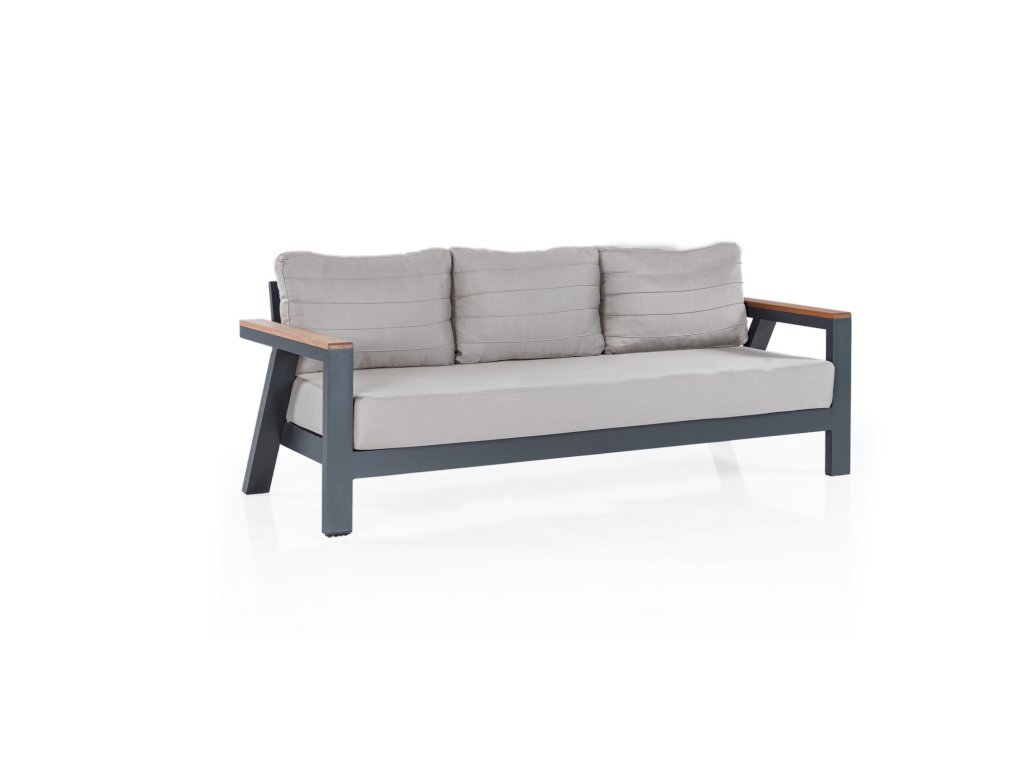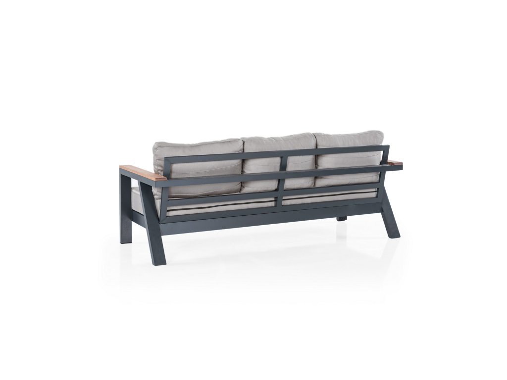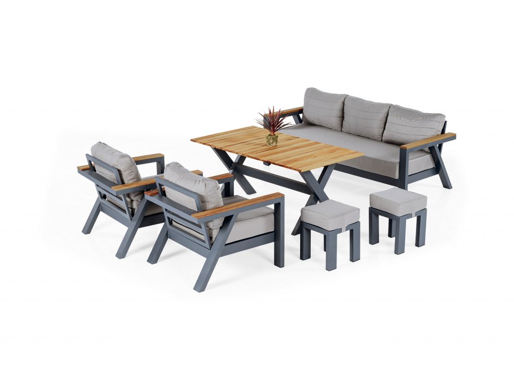 Antracitová sestava zahradního nábytku DAISY SET je složená z třímístné pohovky, konferenčního stolku, dvou křesel a dvou taburetů.