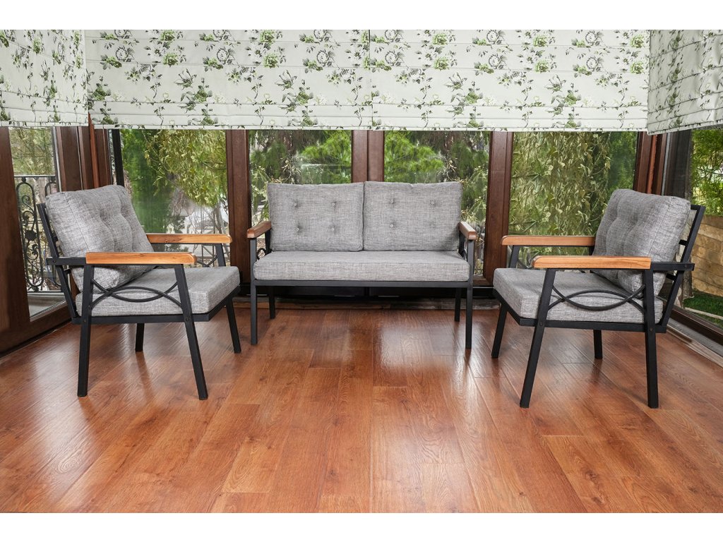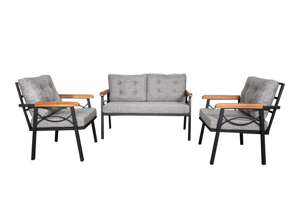Černo-šedá sestava zahradního nábytku DAMLA je složená z dvoumístné pohovky a dvou křesel.
