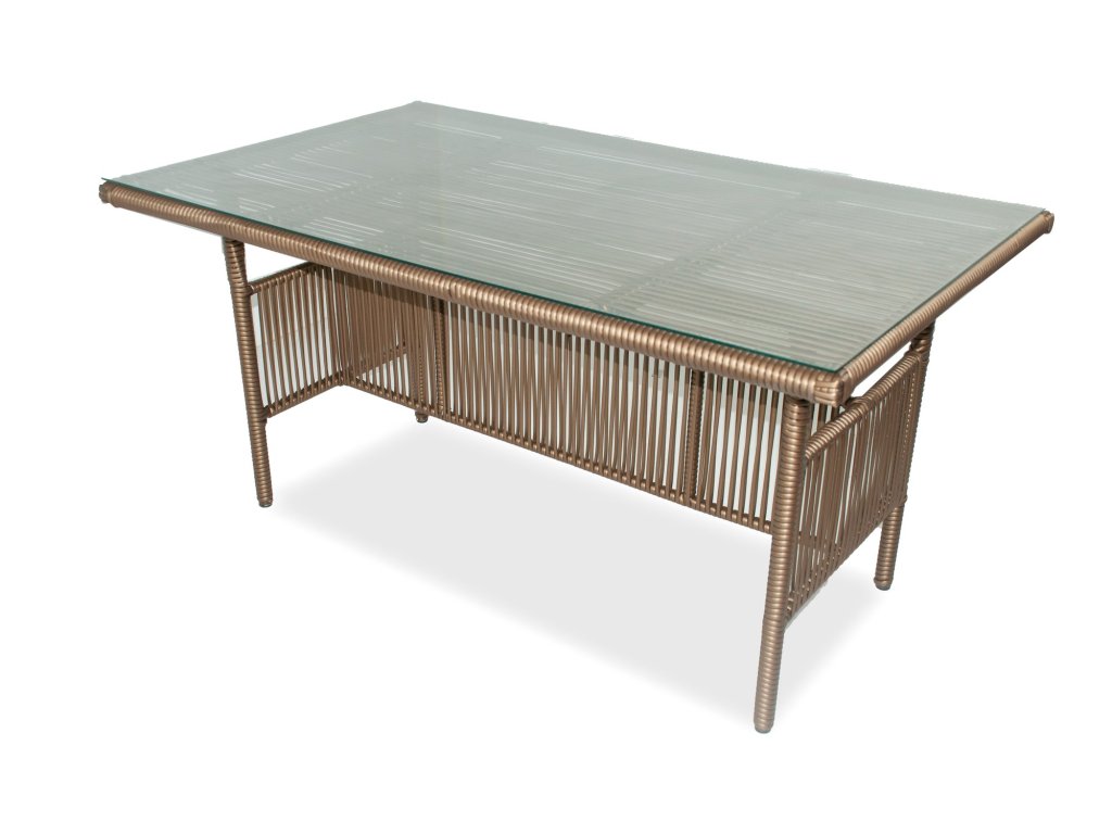 Sestava se skládá ze čtyř židlí a konferenčního stolku se skleněnou deskou, vyrobena je z umělého ratanu.