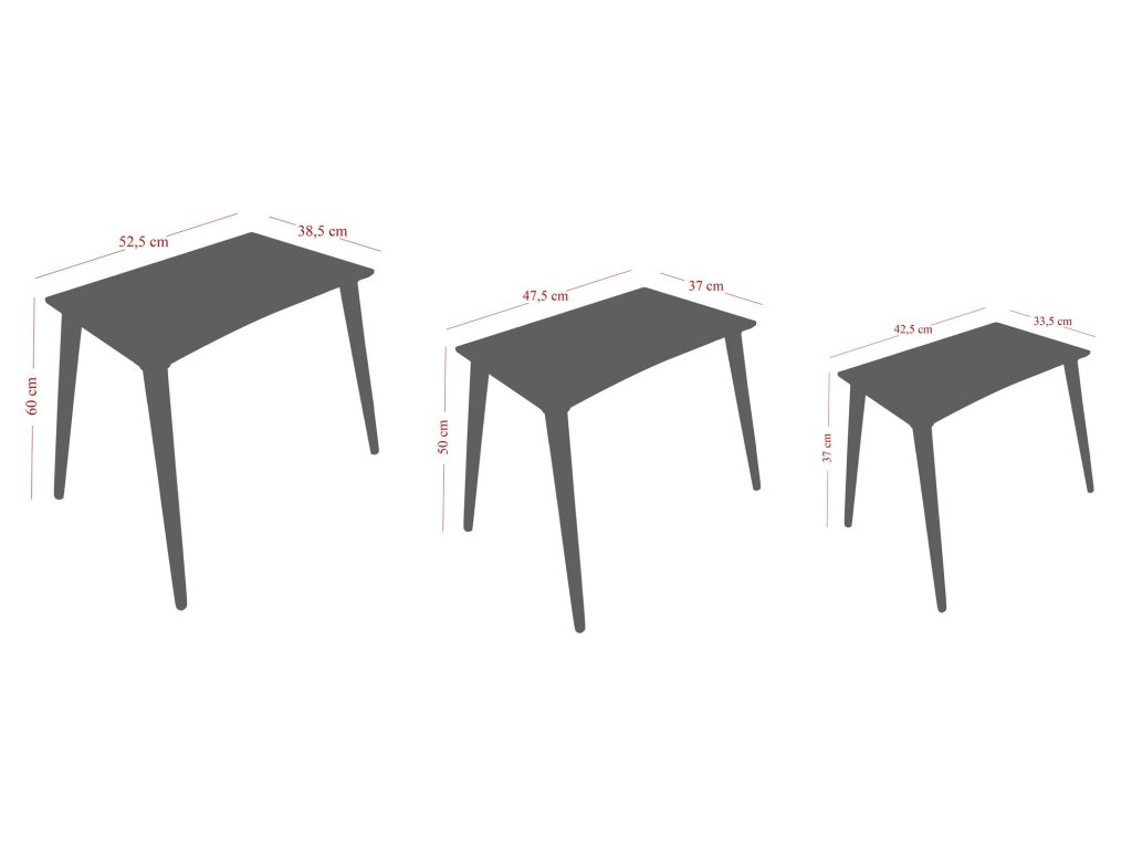 Rozměry největšího stolku: Šířka: 52,5 cm Hloubka: 38,5 cm Výška: 60 cm (1 kus)